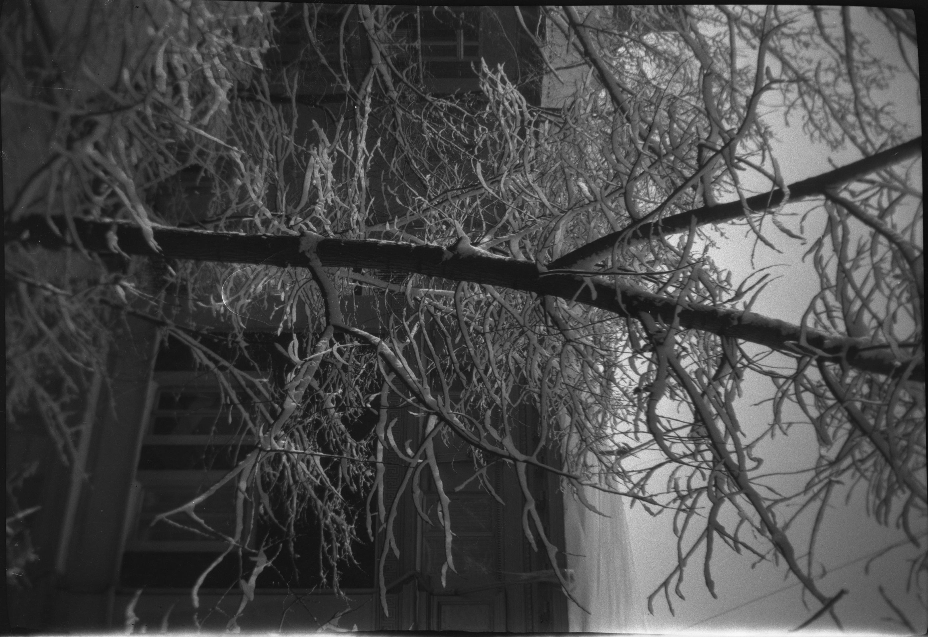 Beskrivning: Fasad skymd av träd
