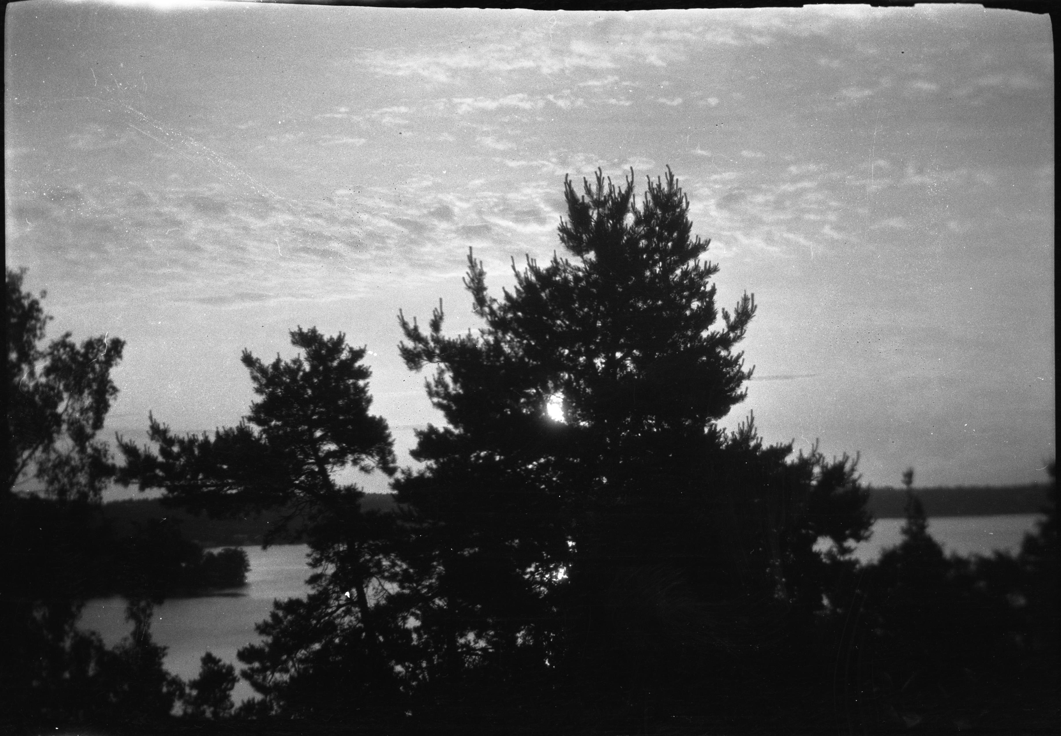 Beskrivning: Midsommmarnatt sedd genom syrumsfönstret