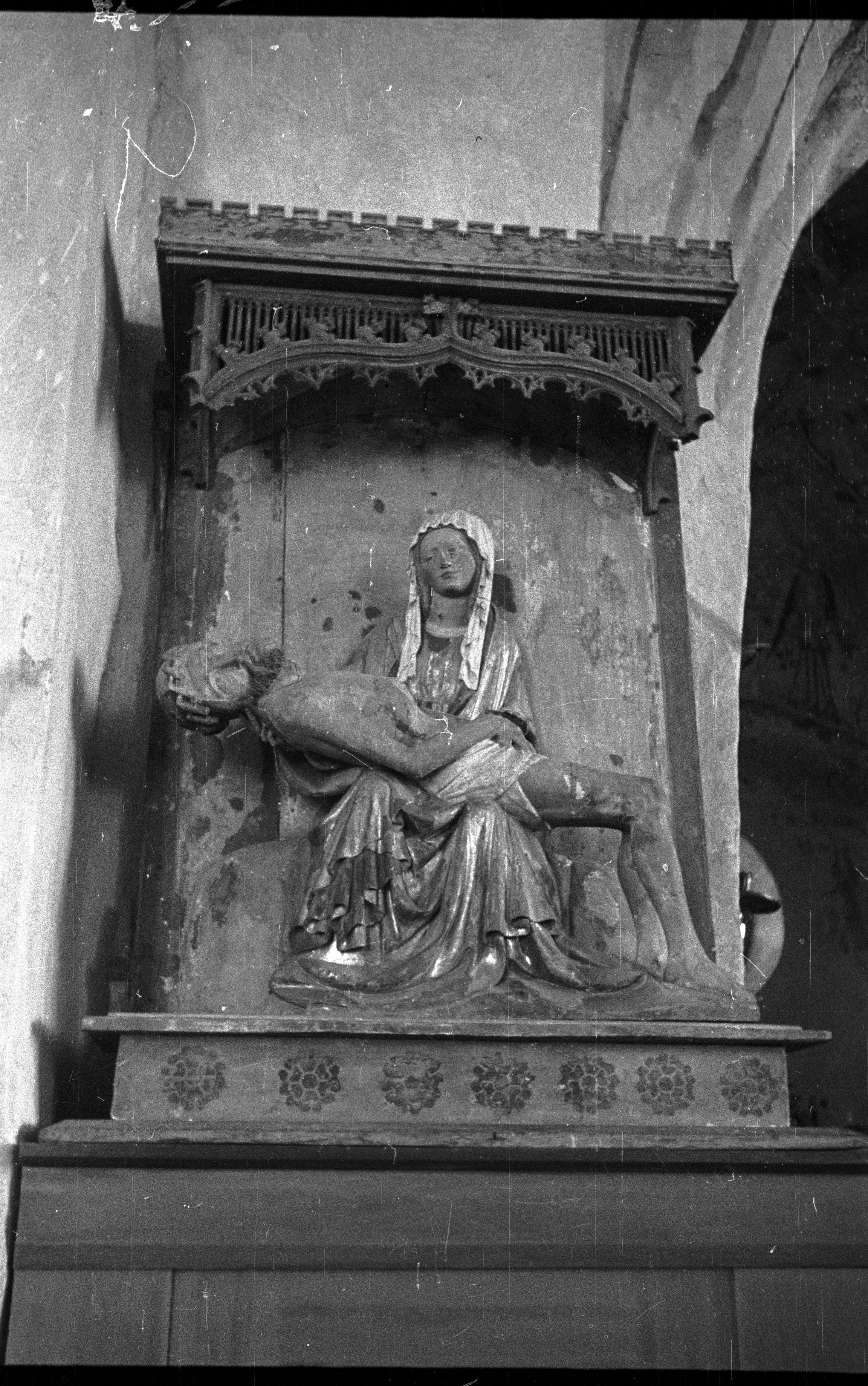Beskrivning: Pietà, skulptur i ek, 1400-talets andra hälft