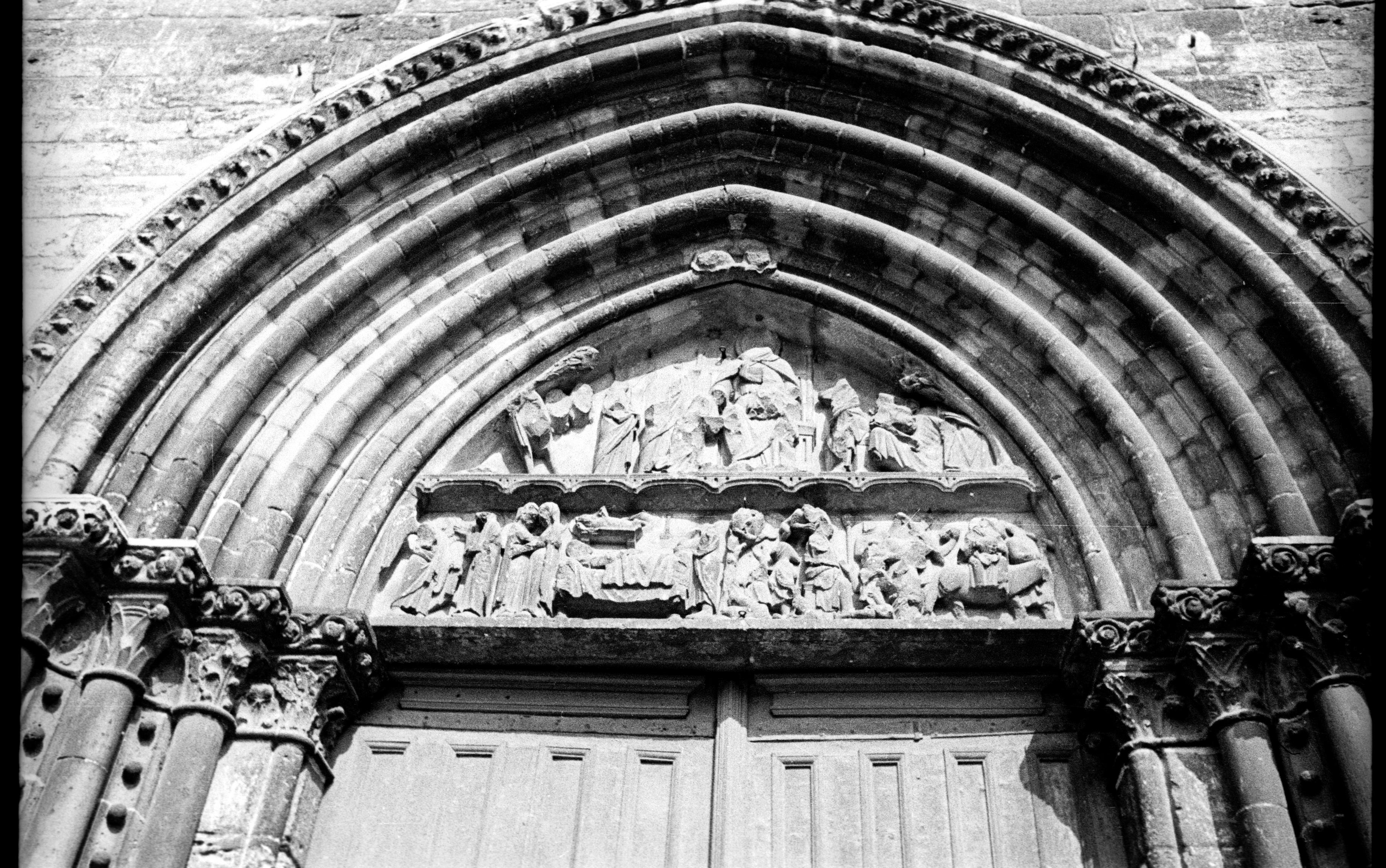 Beskrivning: Notre-Dame. Västportalens tympanonreliefer.