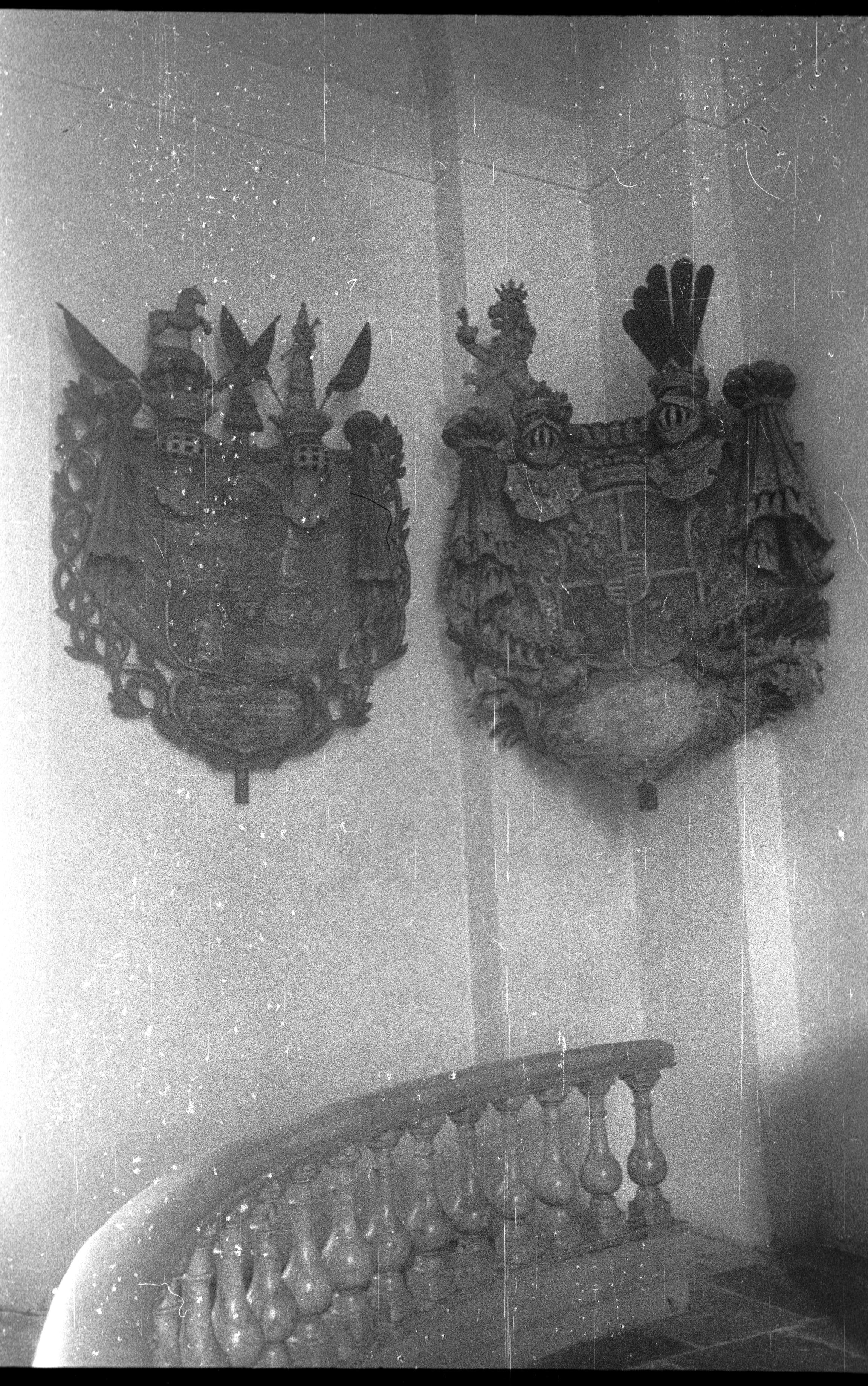 Beskrivning: Vapensköldar: Gustaf von der Linde och Balthasar Gyllenhoff