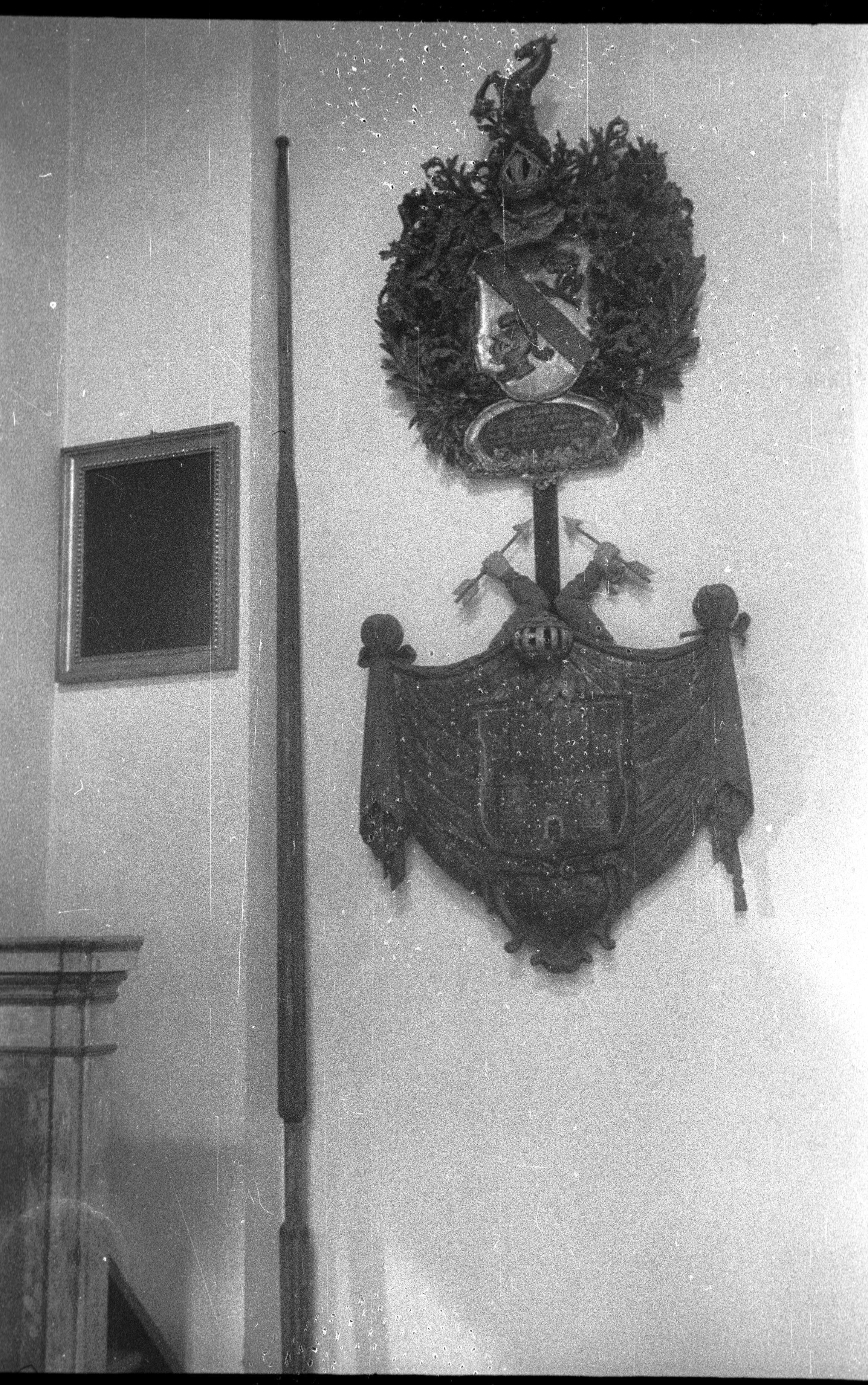 Beskrivning: Knut Mårtenson Törnhielm och Carl Baltsar Campenhausens vapensköldar samt von der Lindes fanstång