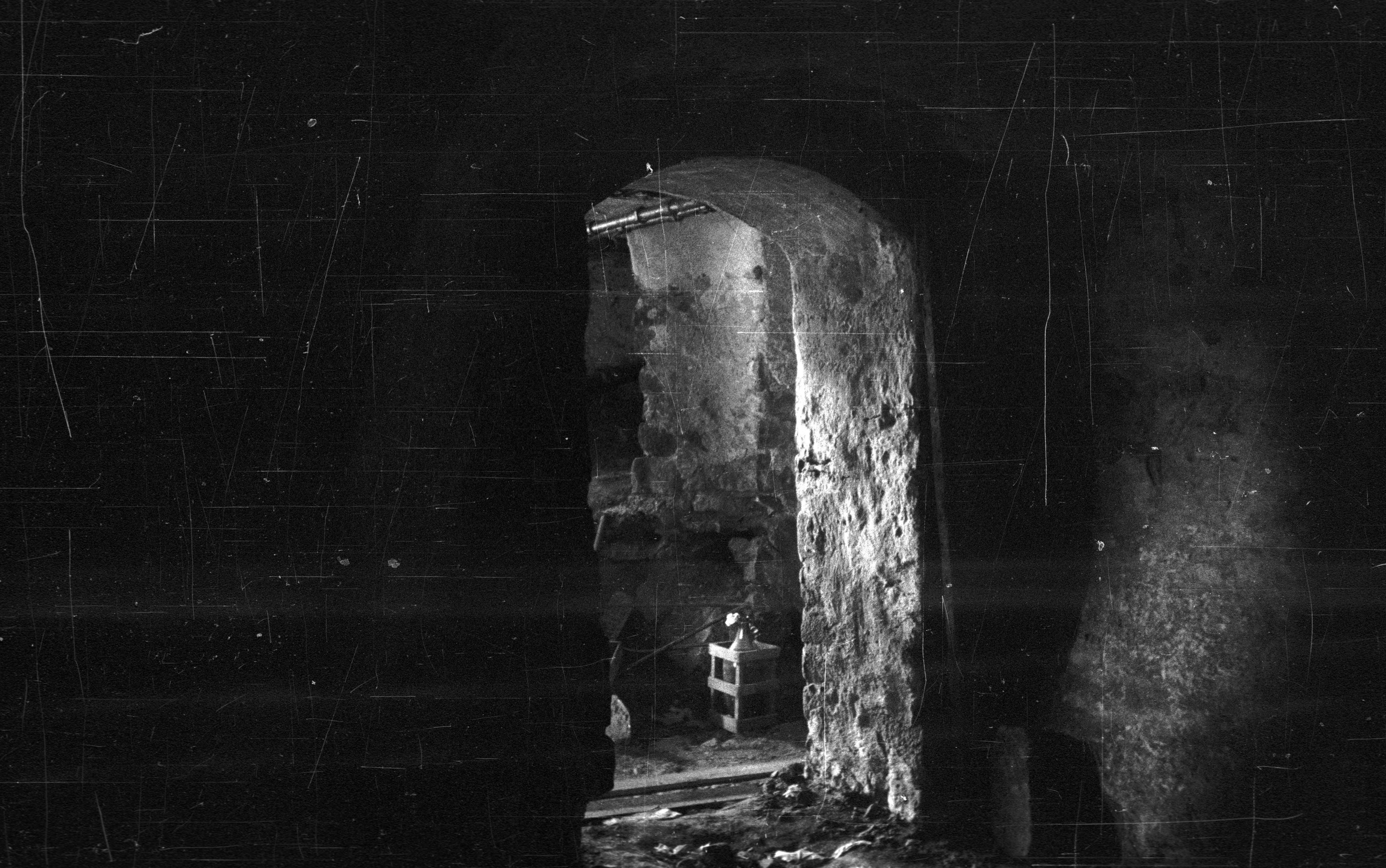 Beskrivning: Prästgården under restaurering, dörr från källarrum