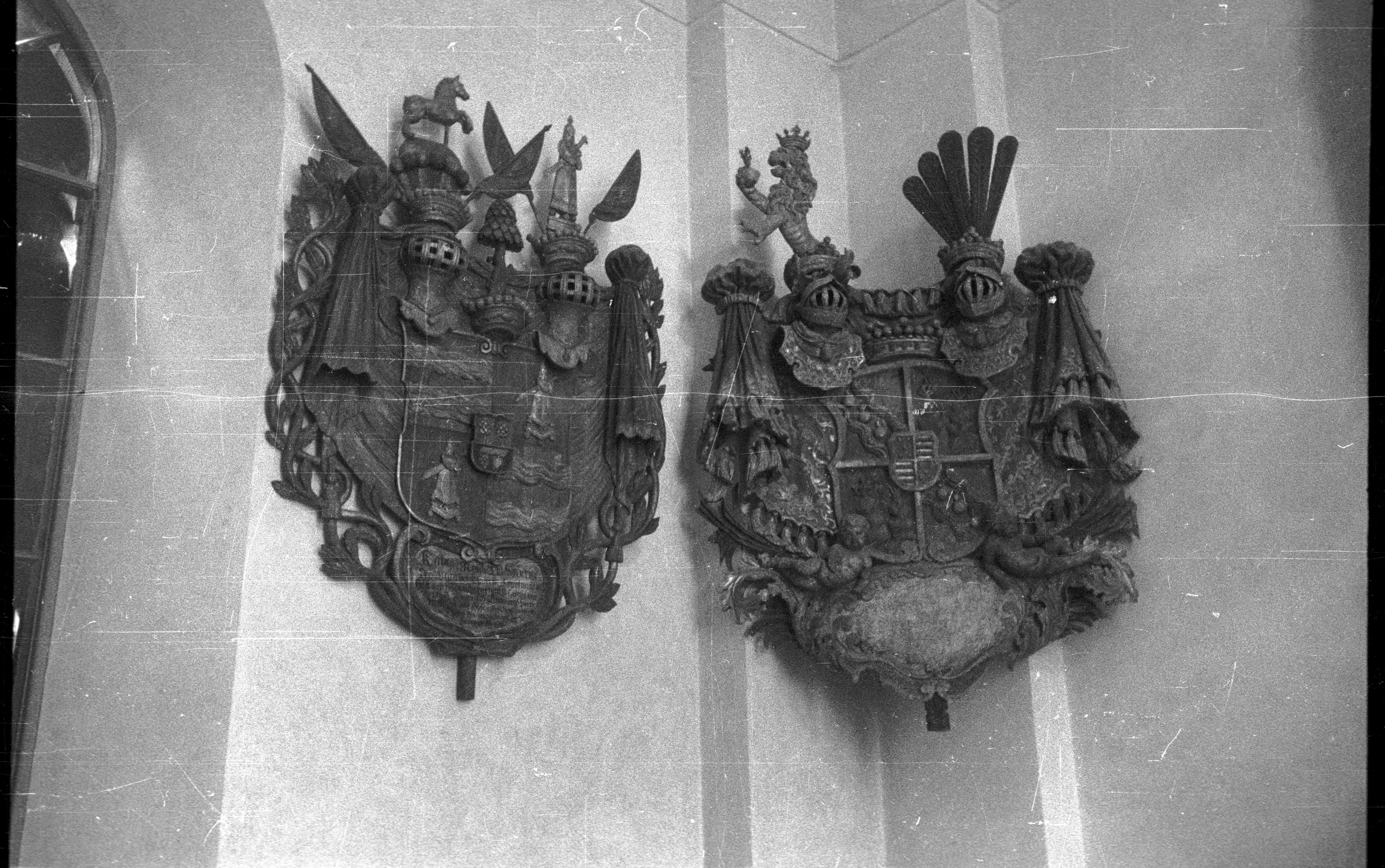 Beskrivning: Vapensköldar: Gustaf von der Linde och Balthasar Gyllenhoff