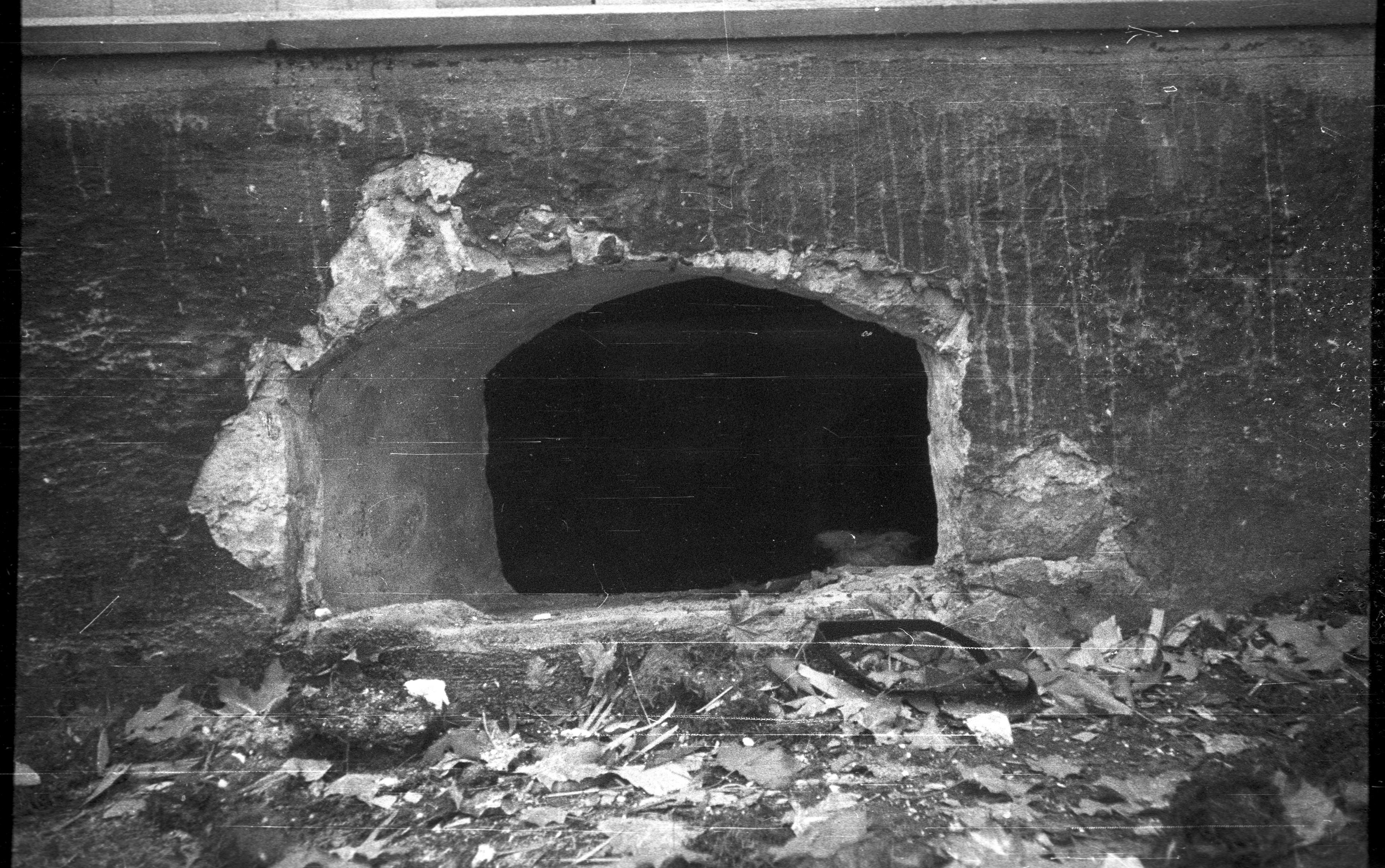 Beskrivning: Prästgården under restaurering, källarglugg sedd utifrån