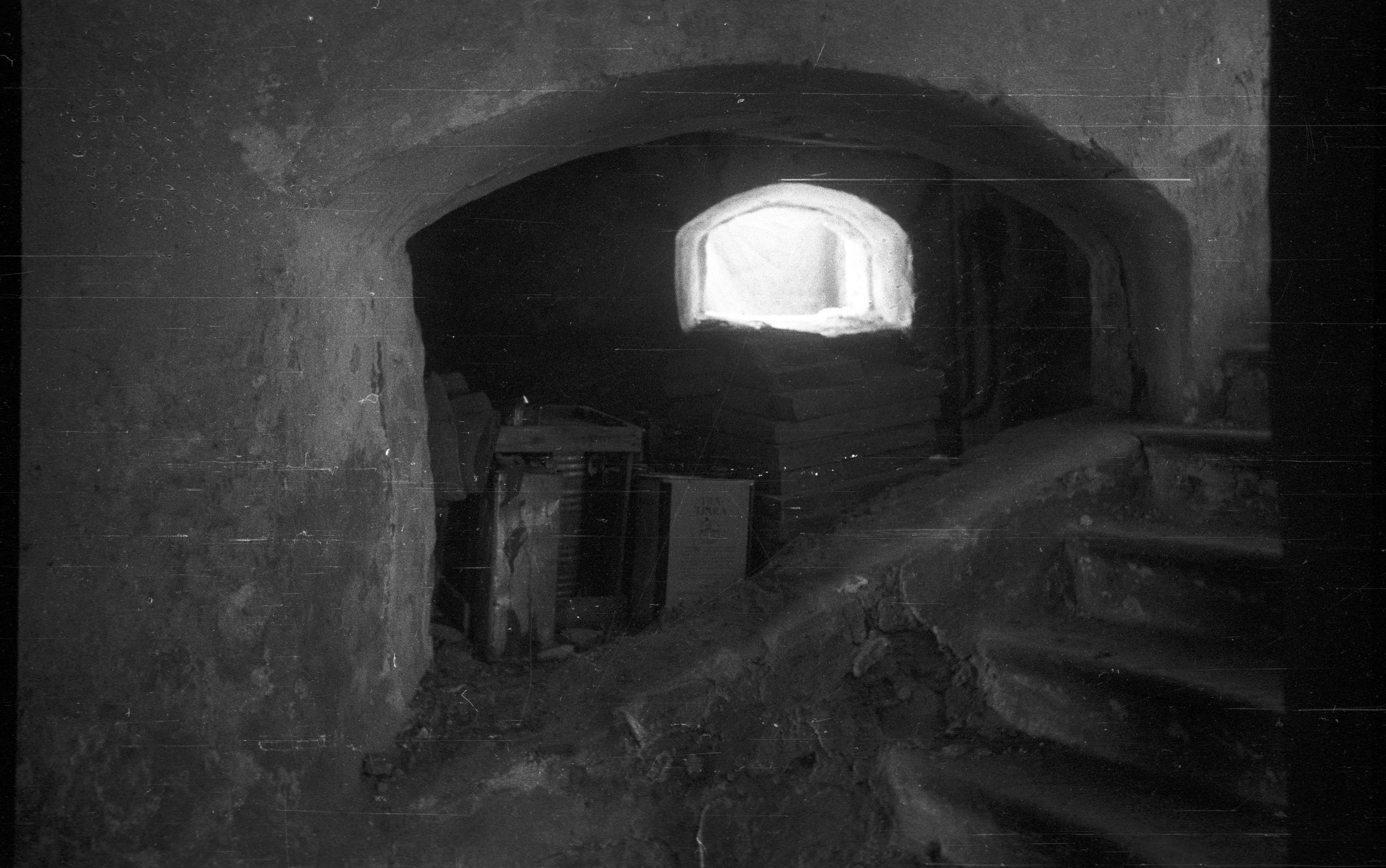 Beskrivning: Prästgården under restaurering, källartrappa och fönsterglugg