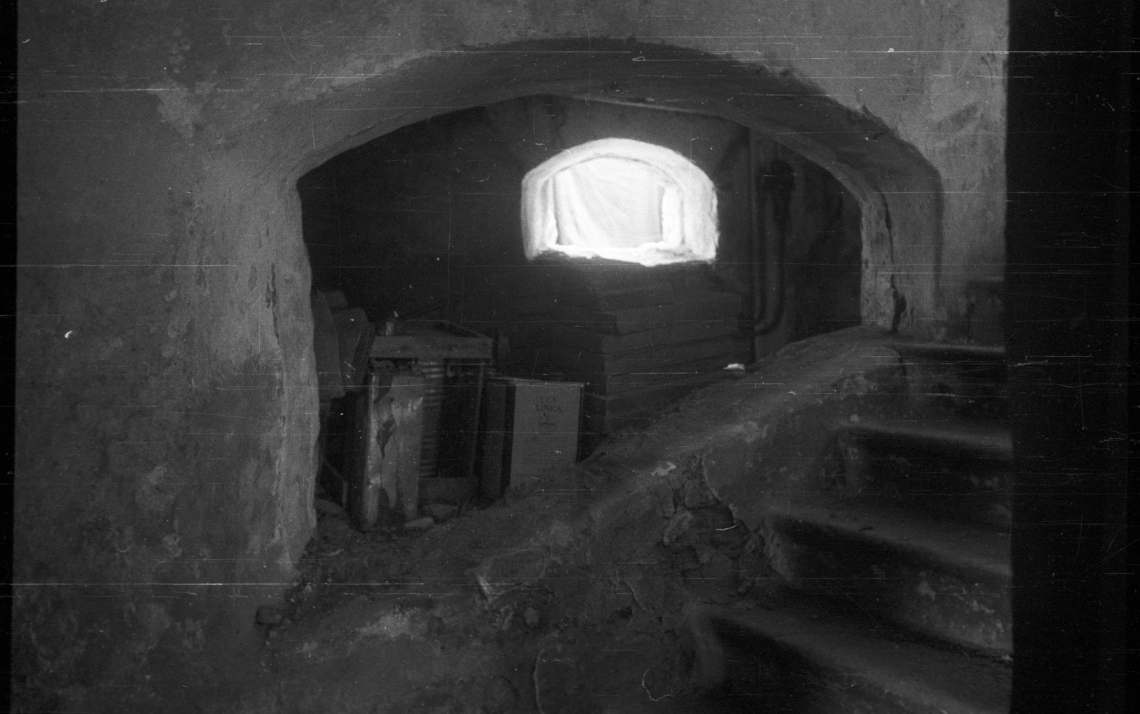 Beskrivning: Prästgården under restaurering, källartrappa och fönsterglugg