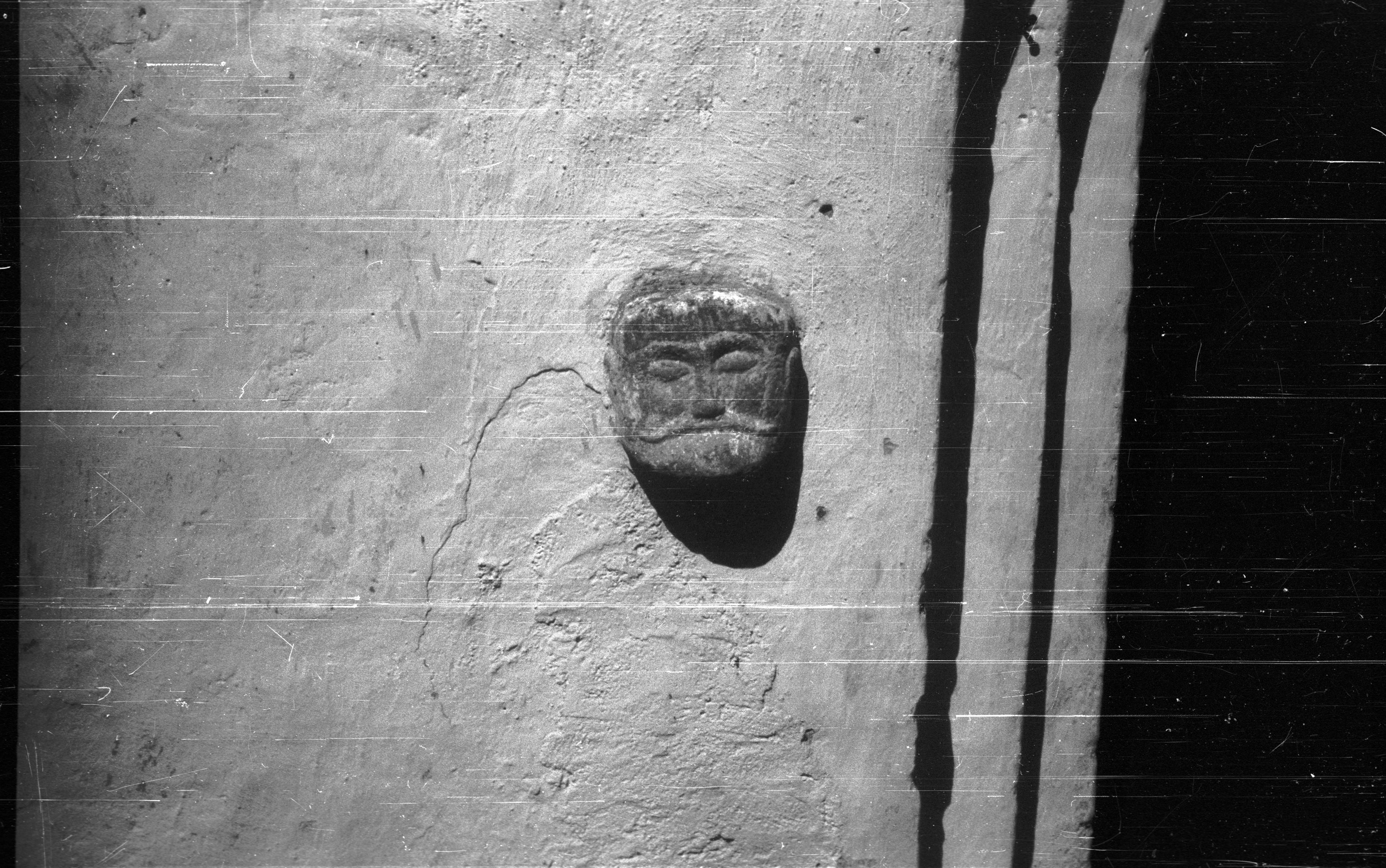 Beskrivning: Skulpterat manshuvud vid sydportalen