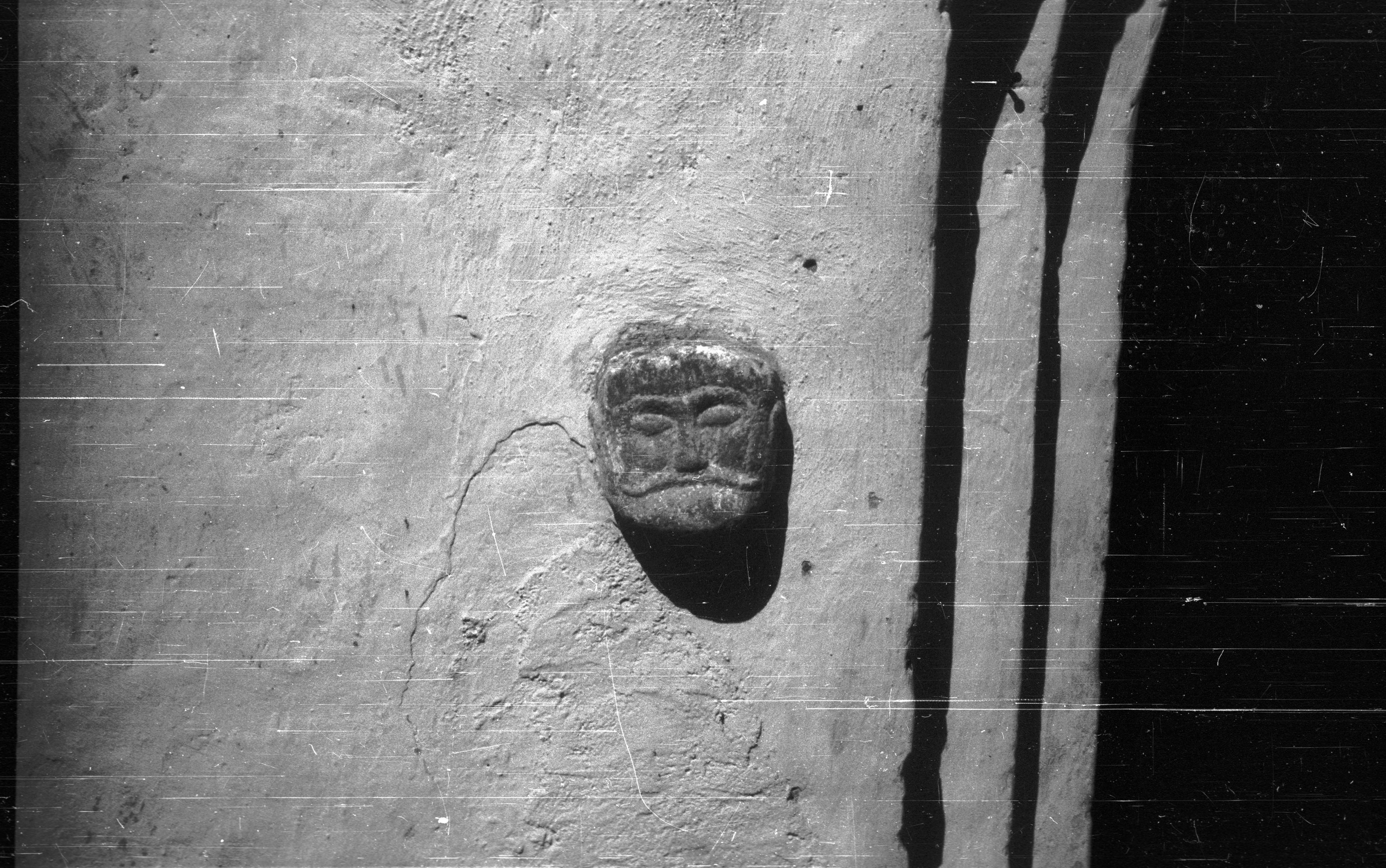 Beskrivning: Skulpterat manshuvud vid sydportalen