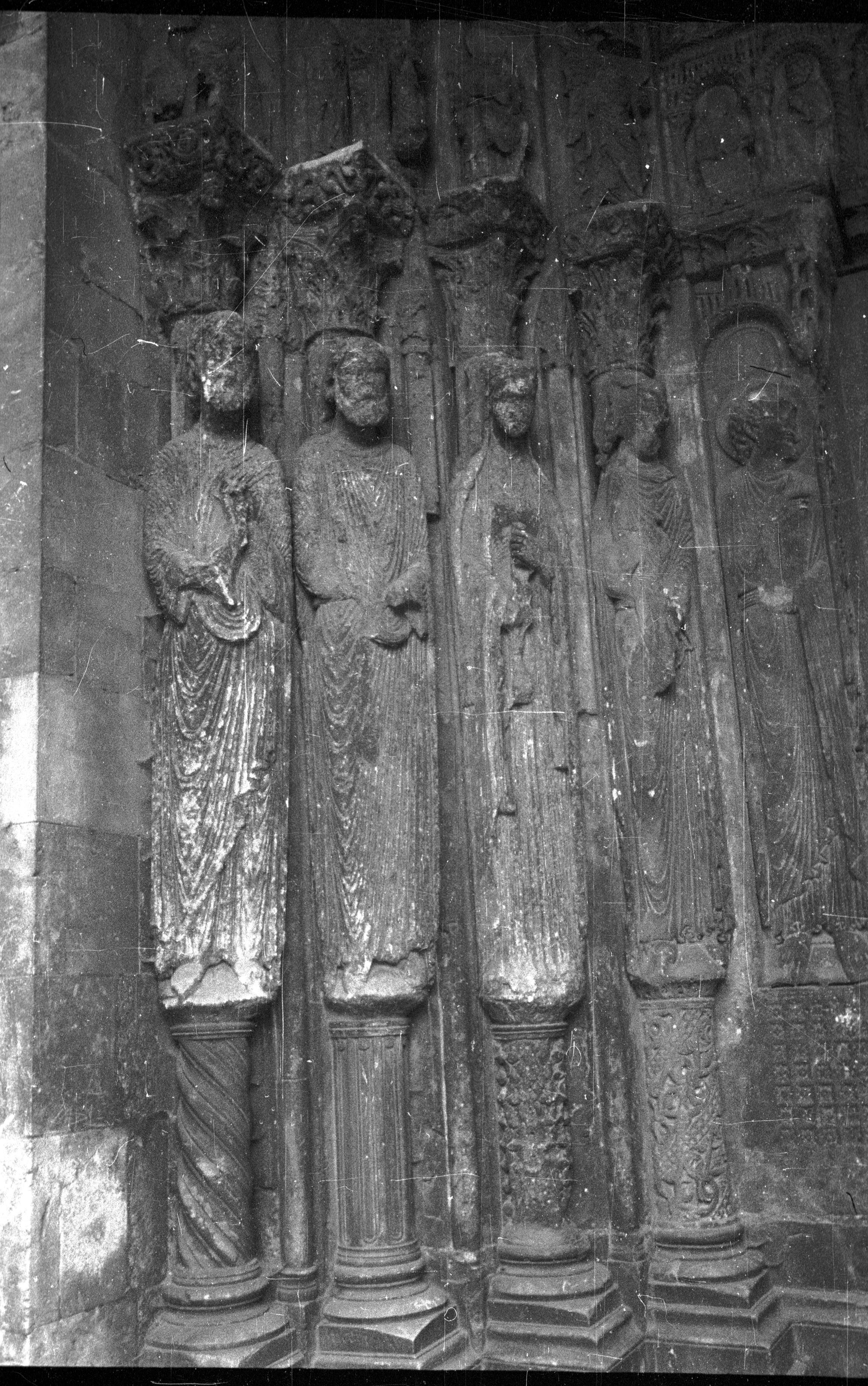 Beskrivning: Cathédrale St-Julien du Mans. Statyerna på sydportalens vänstra sida.