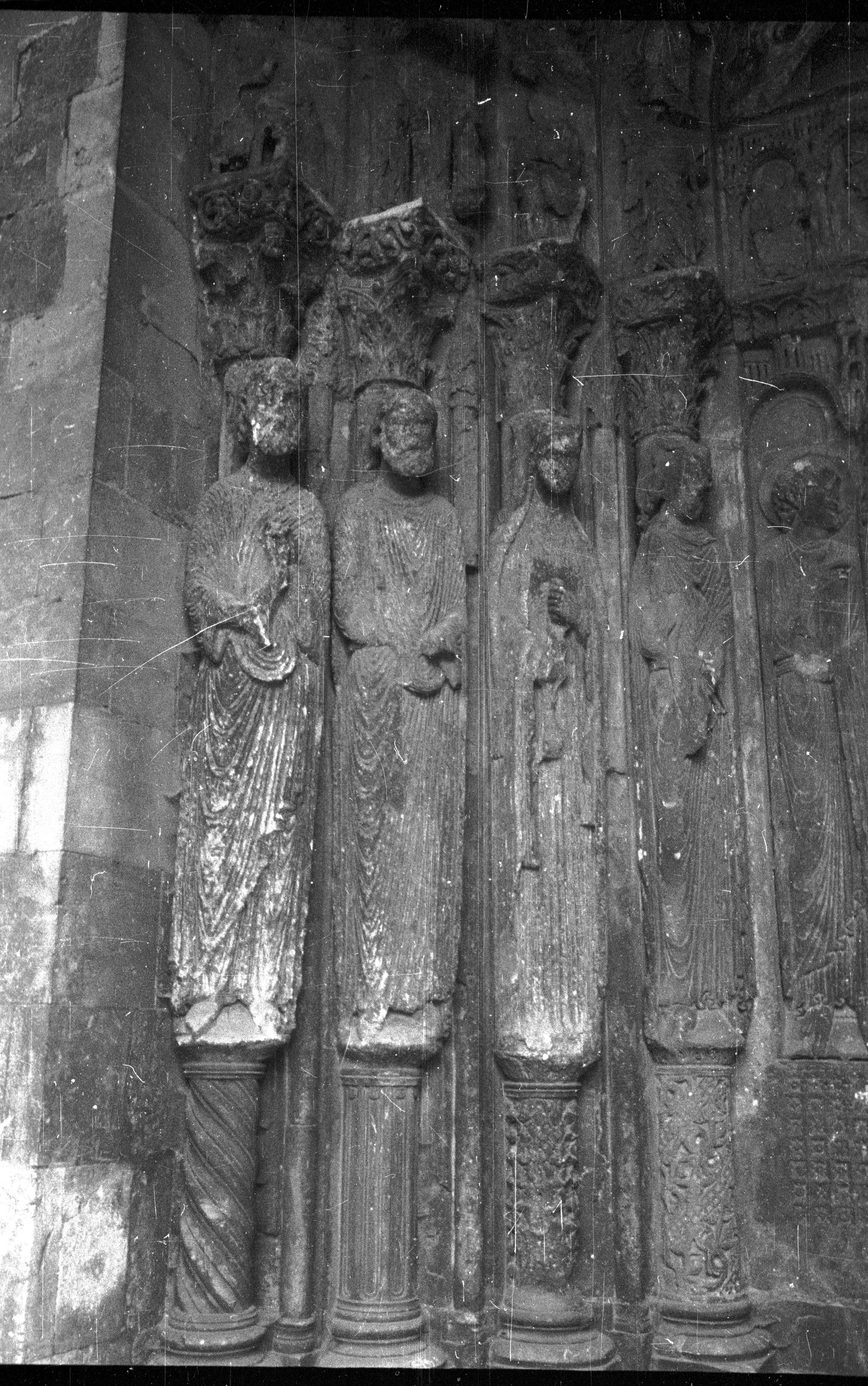 Beskrivning: Cathédrale St-Julien du Mans. Statyerna på sydportalens vänstra sida.