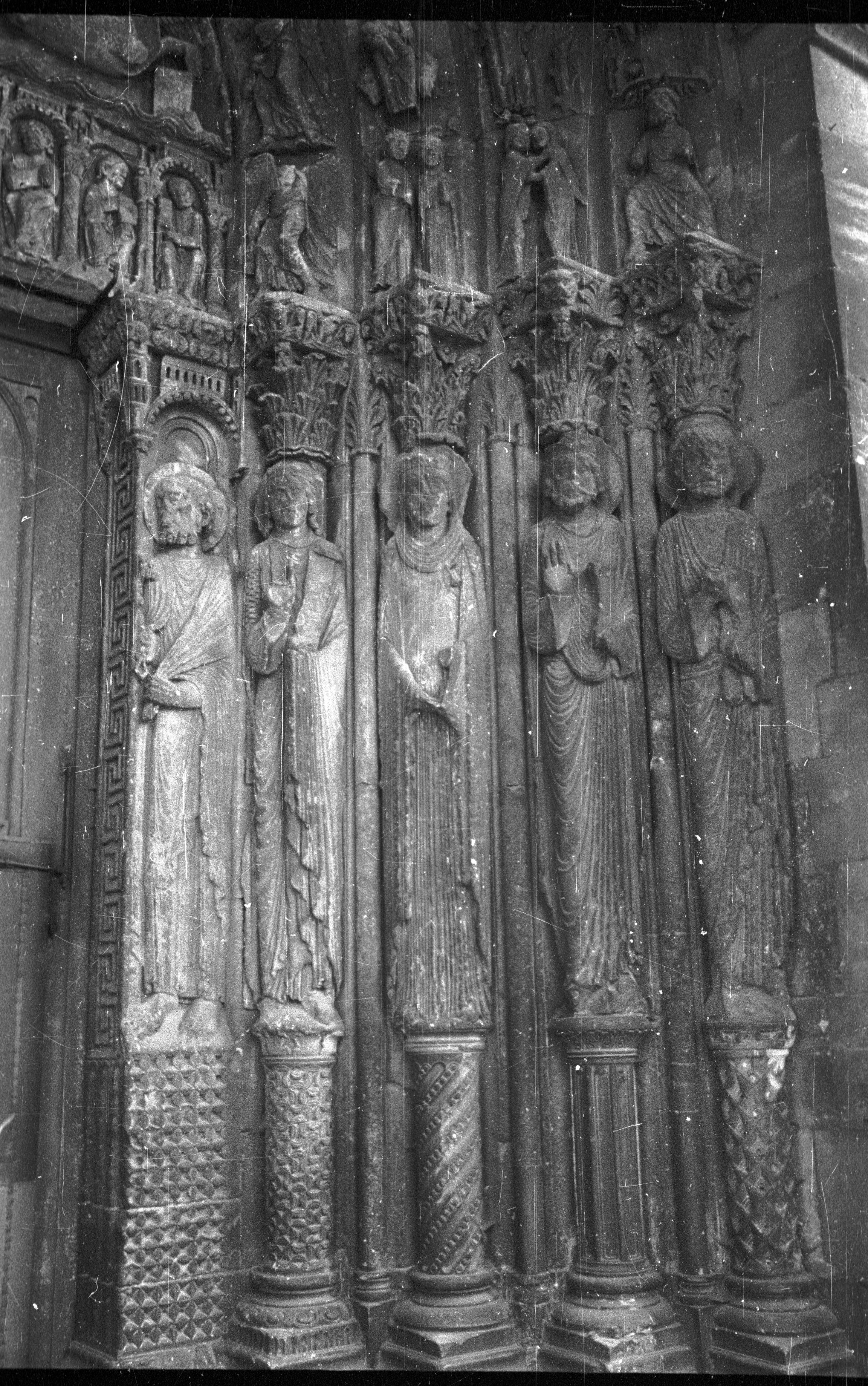 Beskrivning: Cathédrale St-Julien du Mans. Statyerna på sydportalens högra sida.