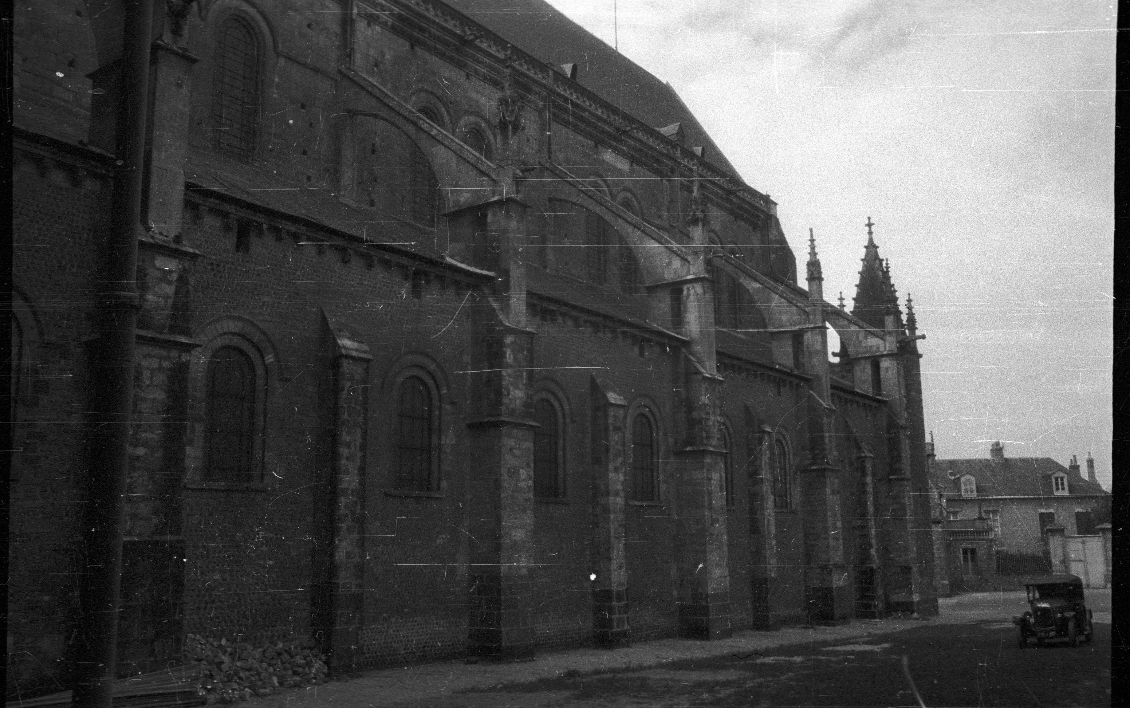 Beskrivning: Cathédrale St-Julien du Mans. Kyrkoexteriör från nordväst.
