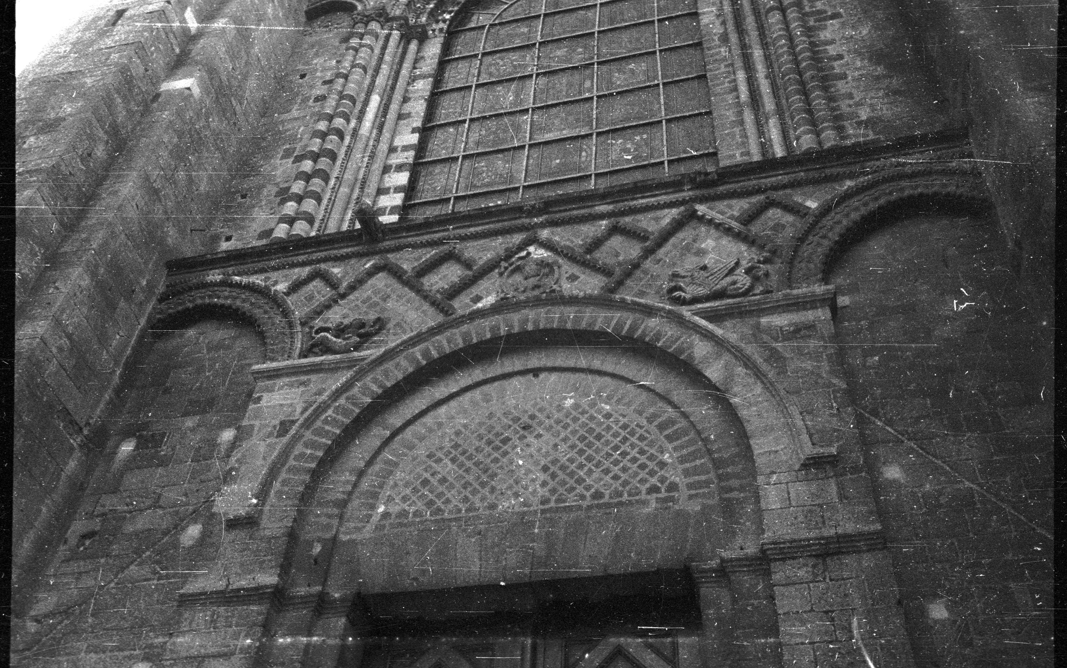 Beskrivning: Cathédrale St-Julien du Mans. Tympanon på västfasadens mittport.