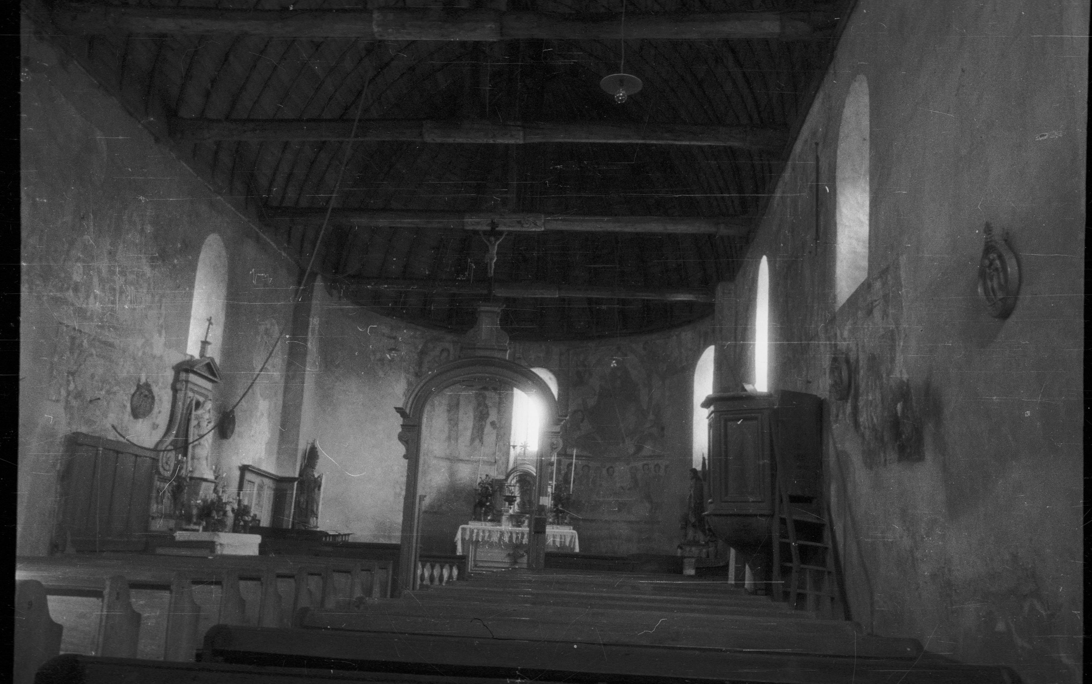 Beskrivning: Saint-Jacques-des-Guérets. Interiör med fresker.