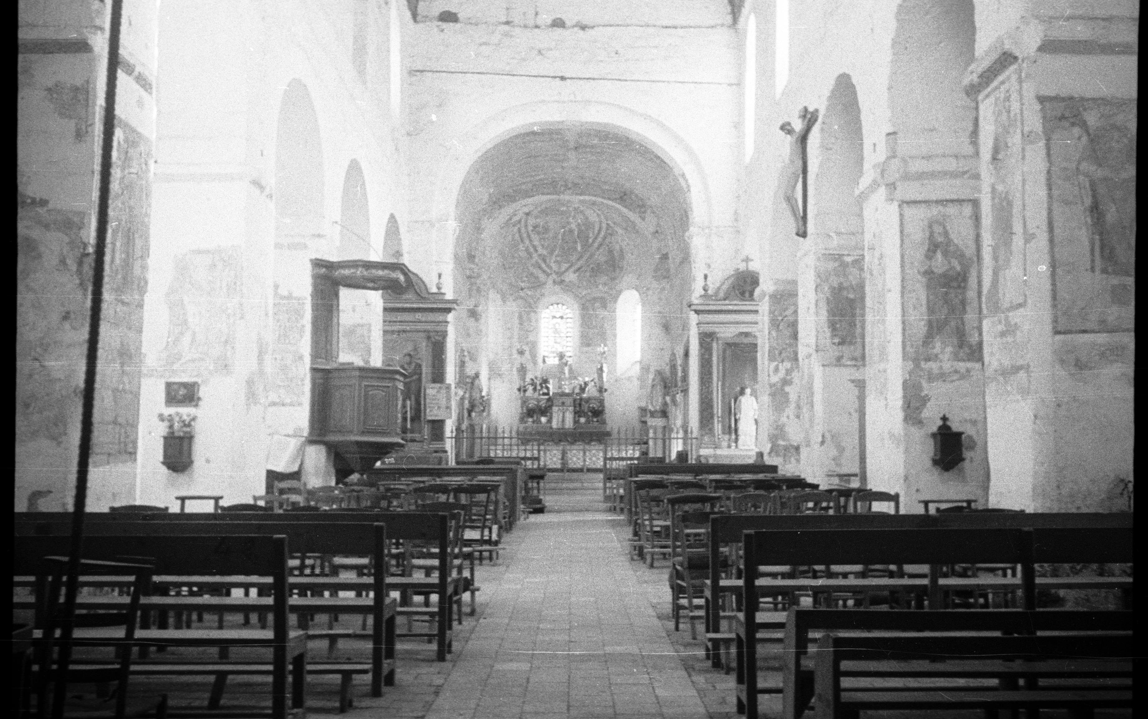 Beskrivning: Beskrivning: Église Saint-Genest. Interiör med fresker. Fotosyfte: