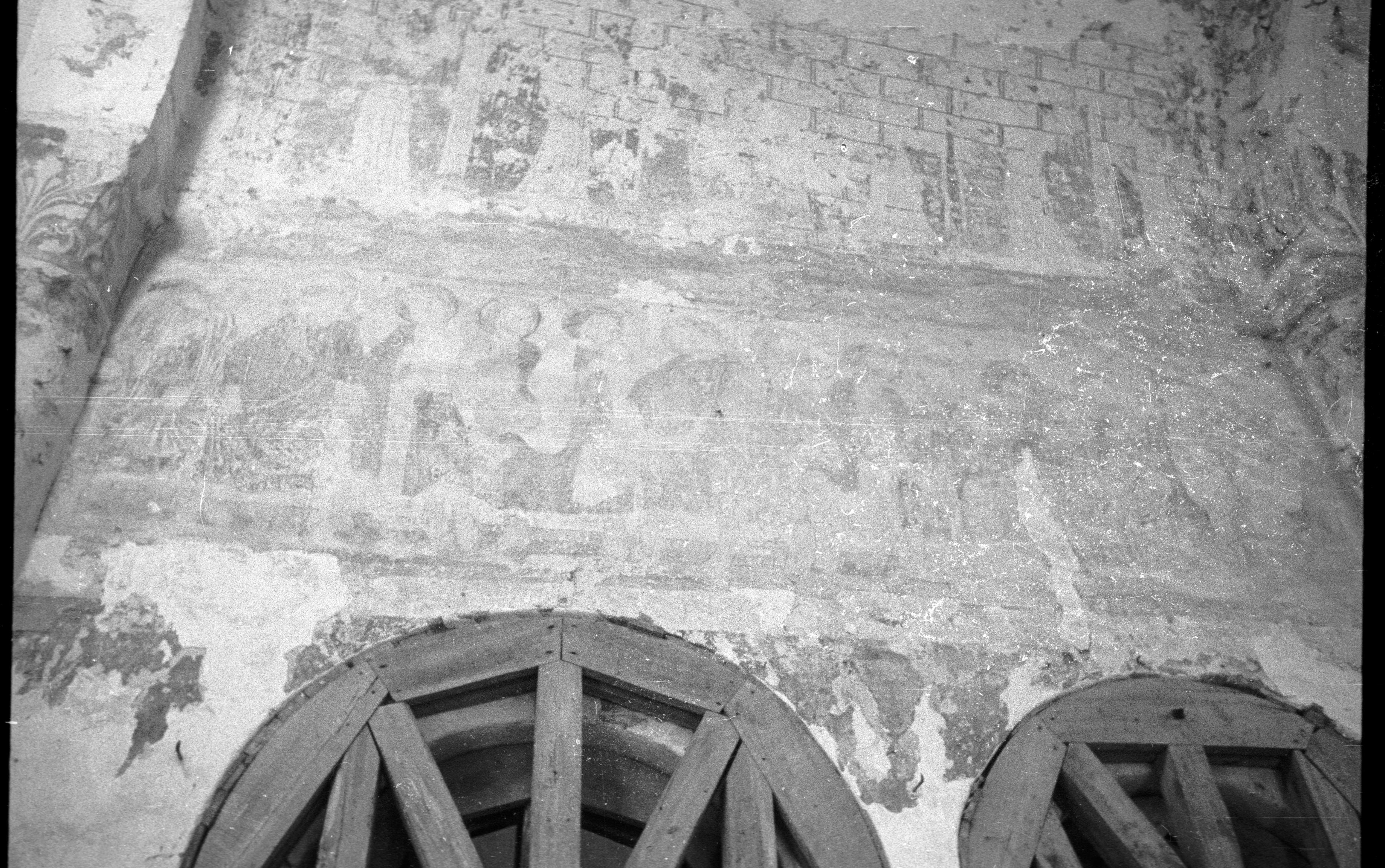 Beskrivning: Église Saint-Genest. Interiör med fresker.