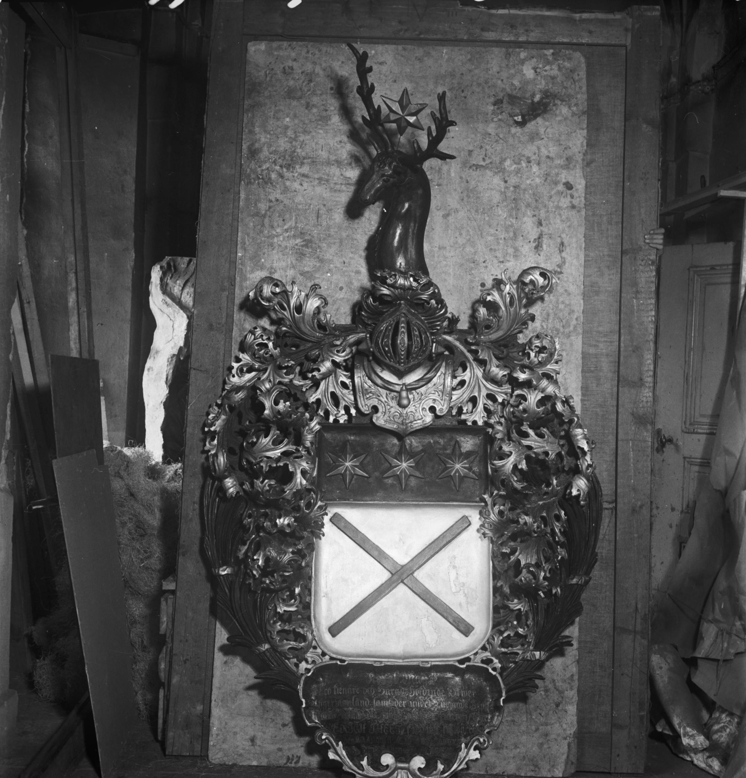 Beskrivning: Begravningsvapen tillhörande Häradshövdingen Erich Theet, 1673-1733.