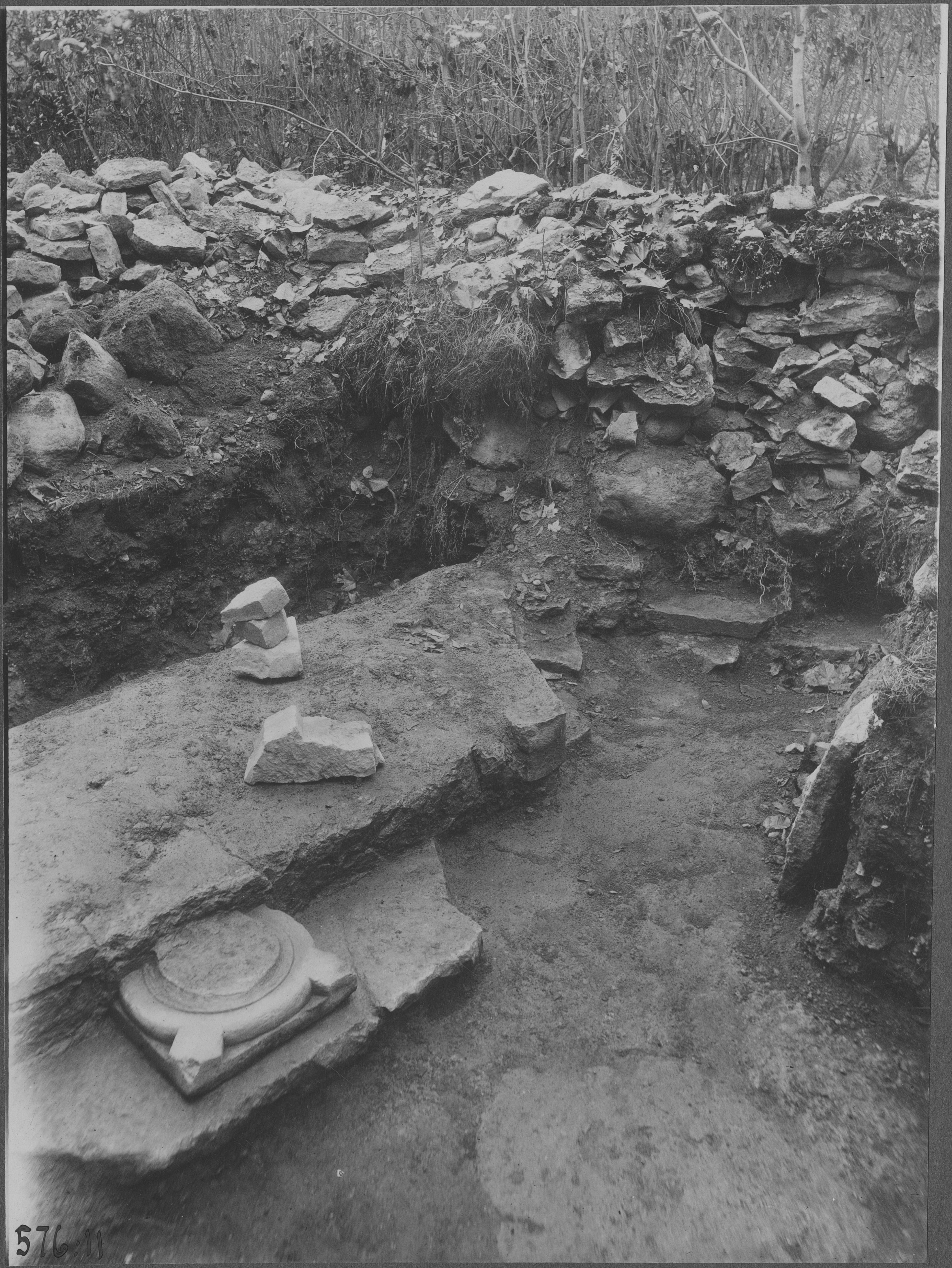 Beskrivning: Västra muren av den uppgrävda gången utanför norra förhallen.