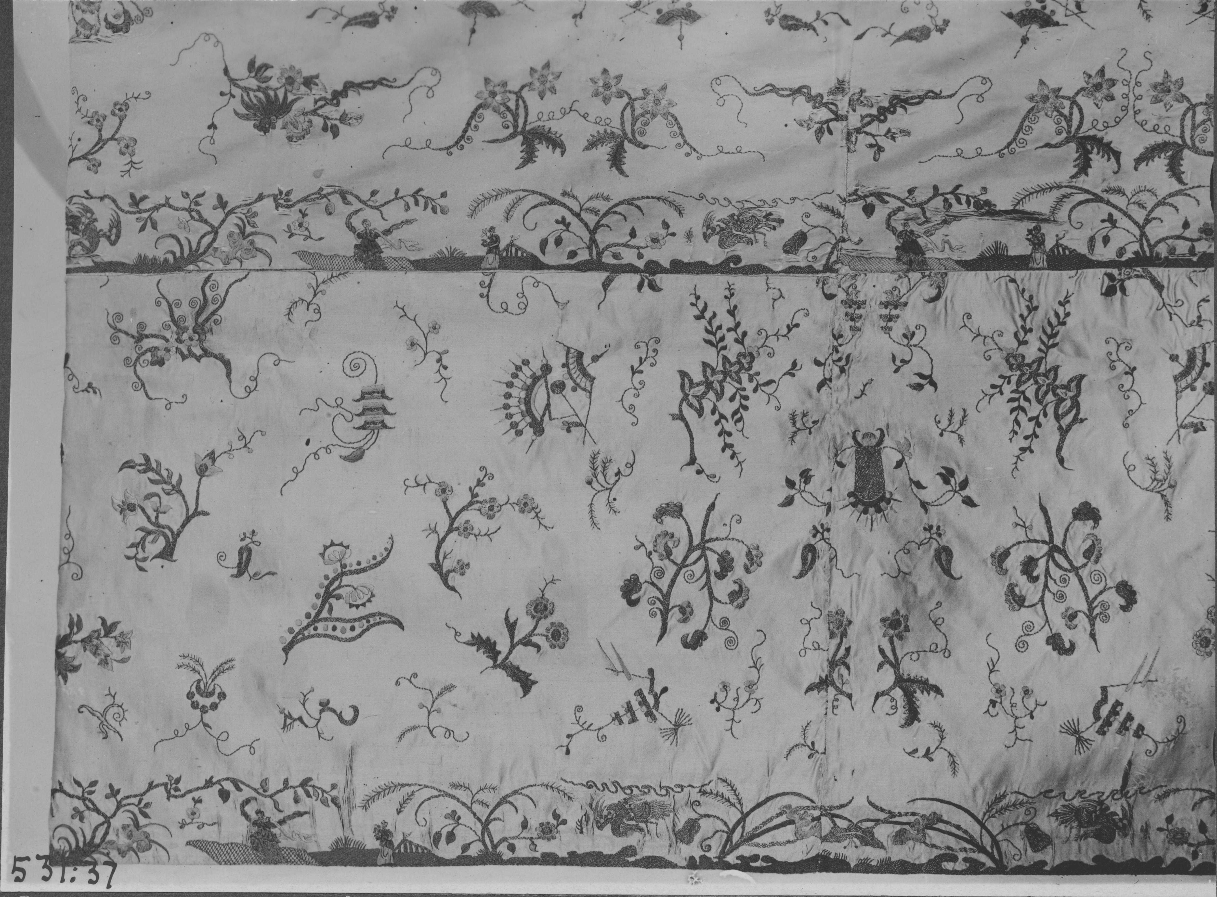 Beskrivning: Detalj av brudpäll, kinesiskt arbete.