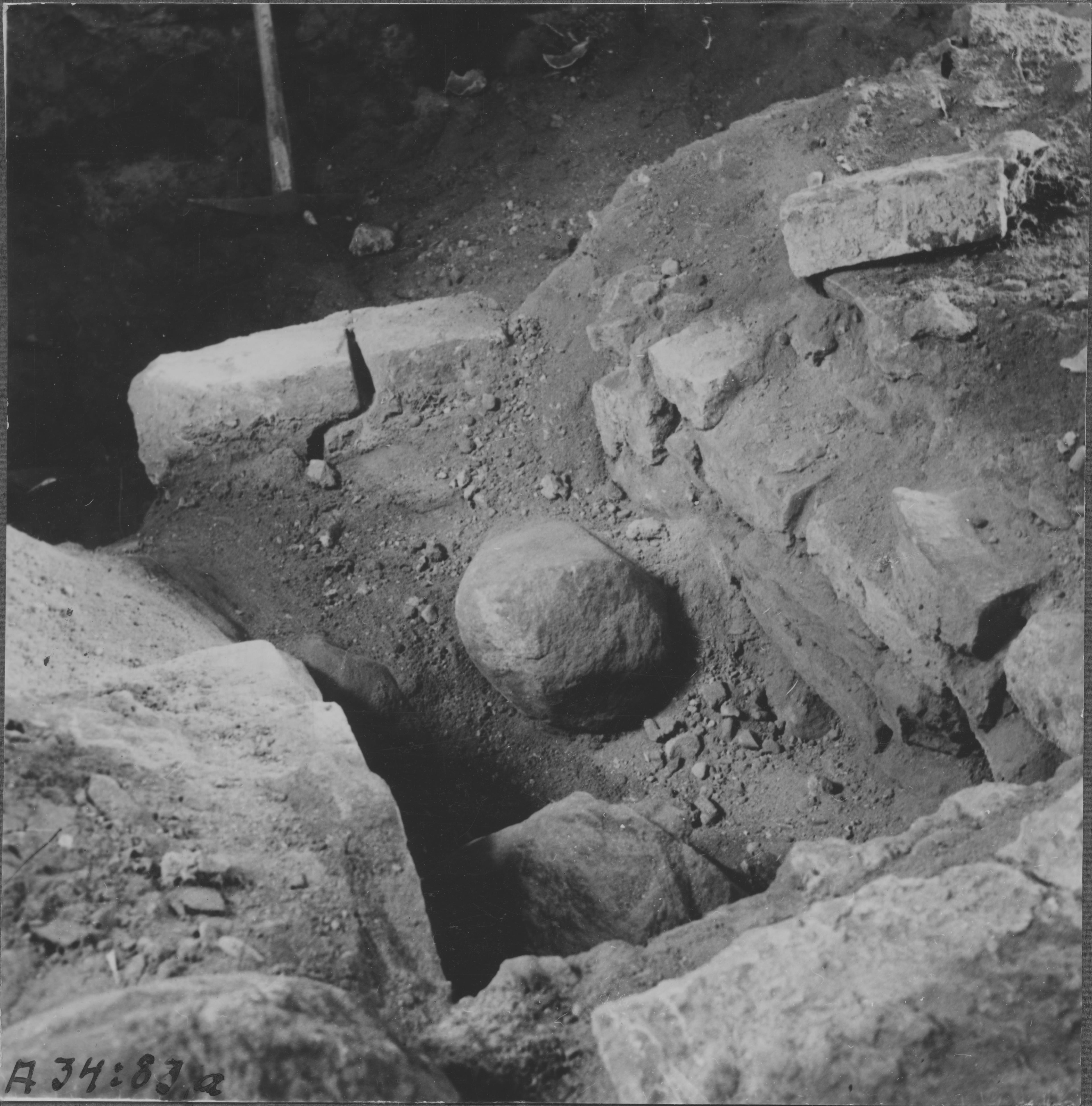 Beskrivning: Utgrävning i kyrkan. Nedgång till vinkällaren, från väster.