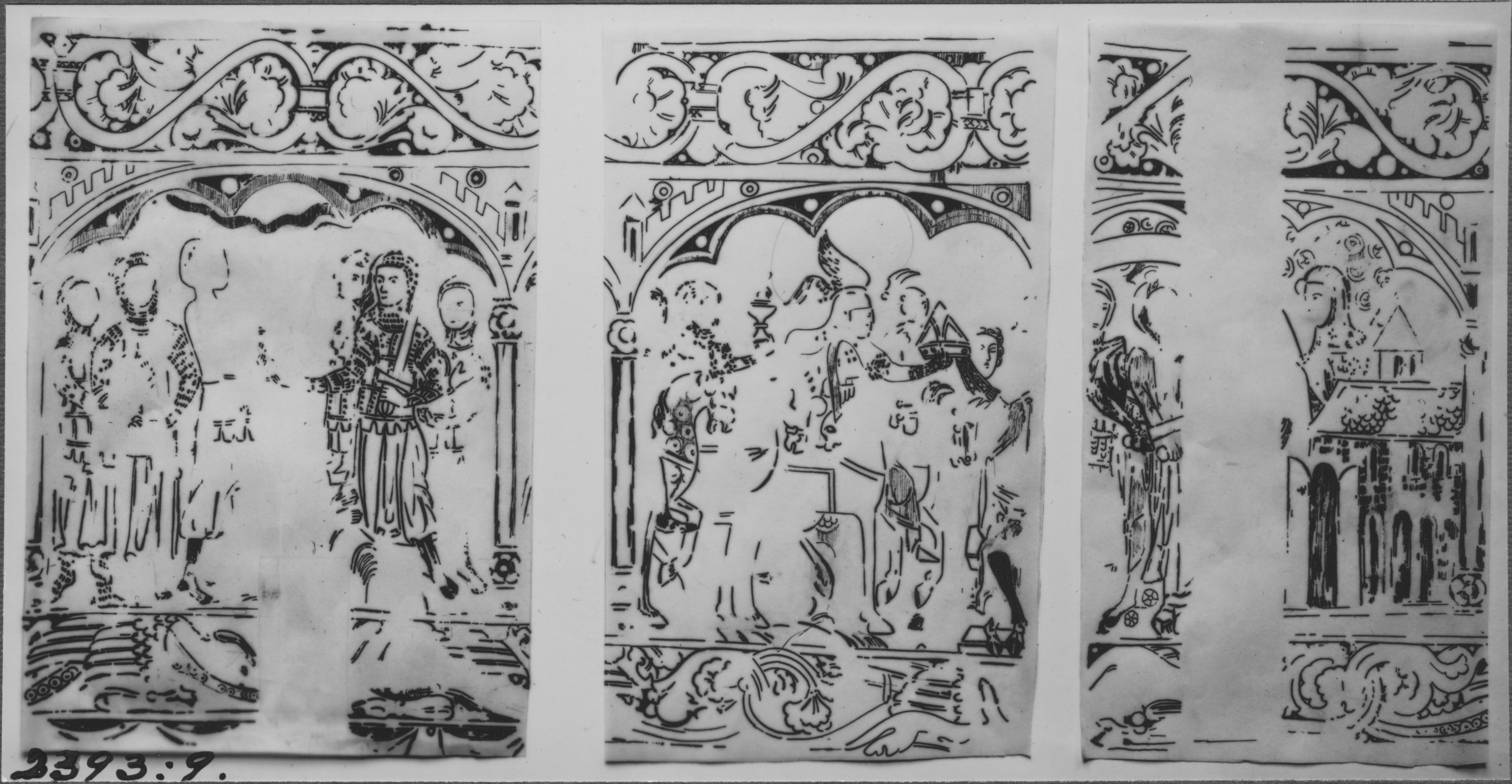 Beskrivning: Beskrivning: Skiss av del av målad väggpanel.