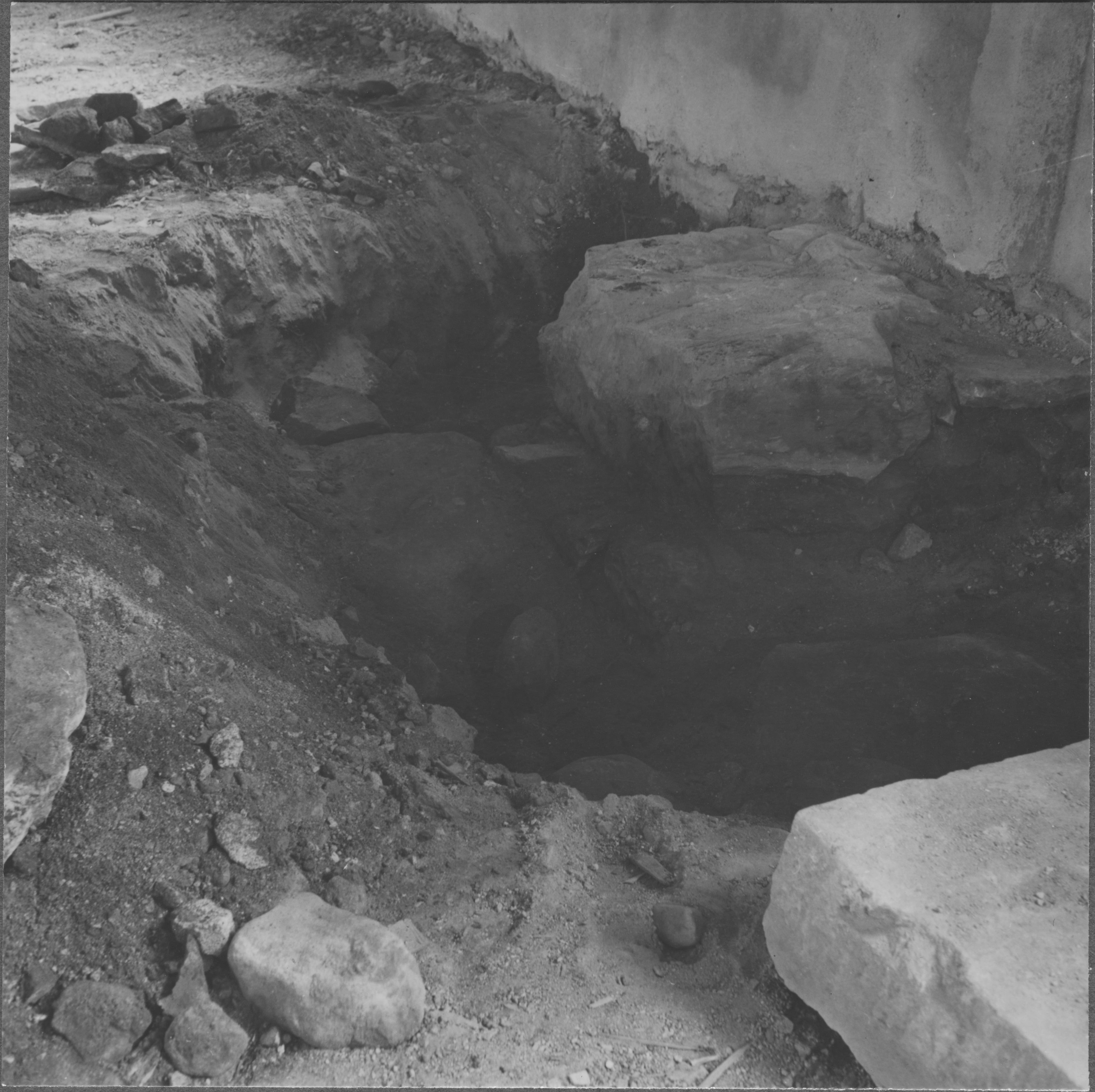 Beskrivning: Pilastergrund omedelbart öster om korportalen samt delar av grundmur till romanska kyrkans kor.