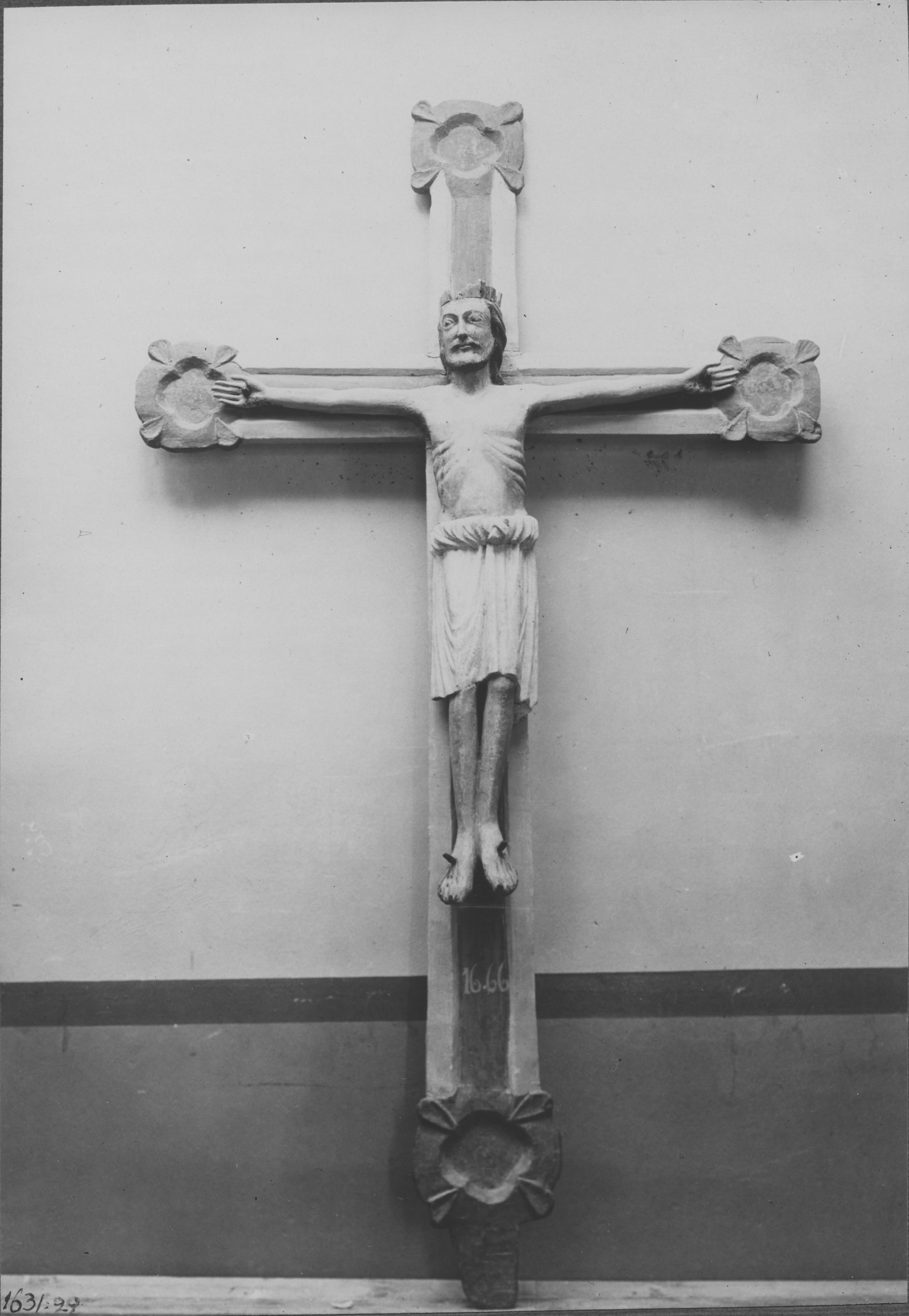 Beskrivning: Triumfkrucifix. Efter konservering 1931 av Sven Sundbaum.