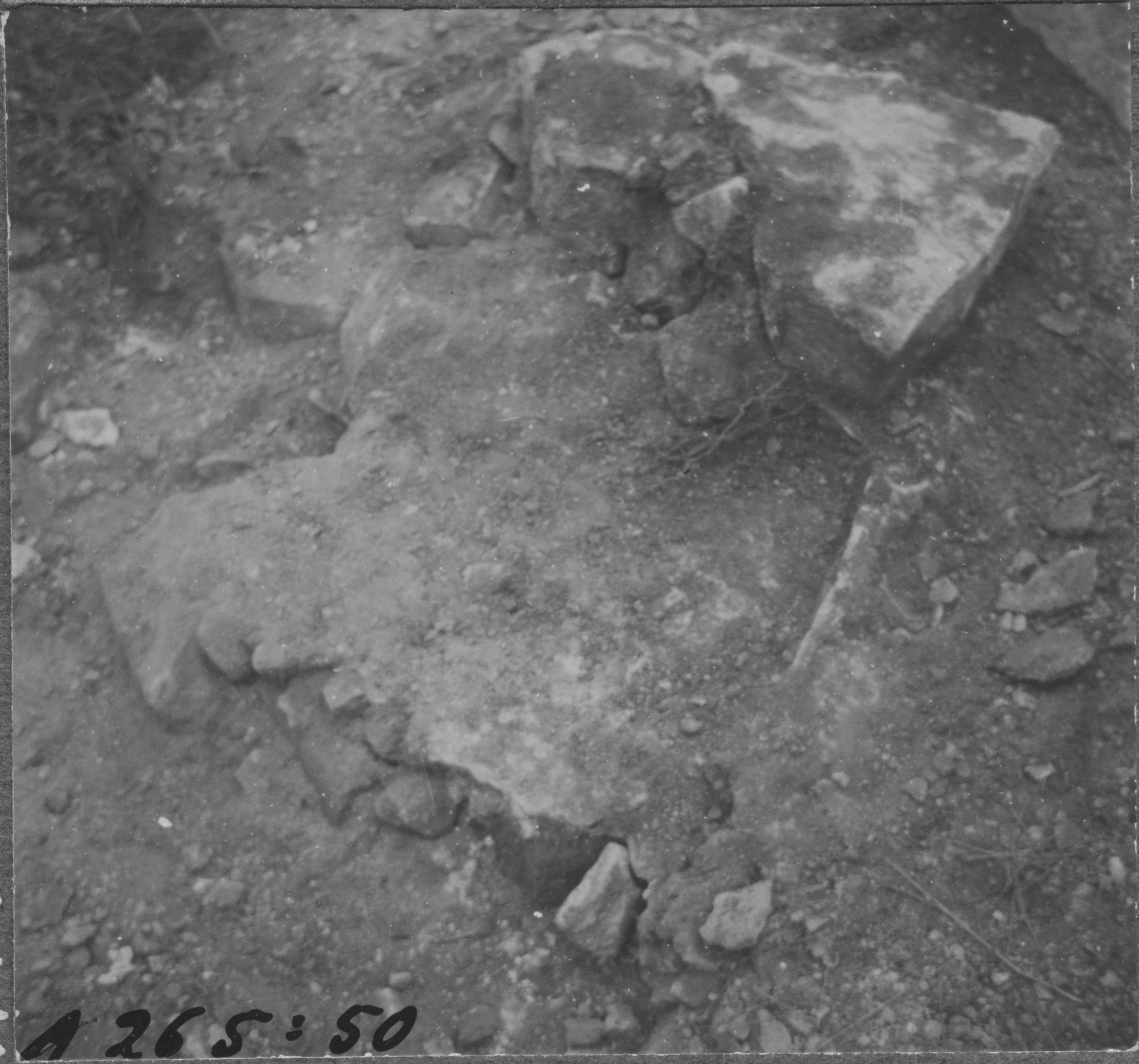 Beskrivning: Utgrävning 1953-1954 av murlämningar efter gamla kyrkan.