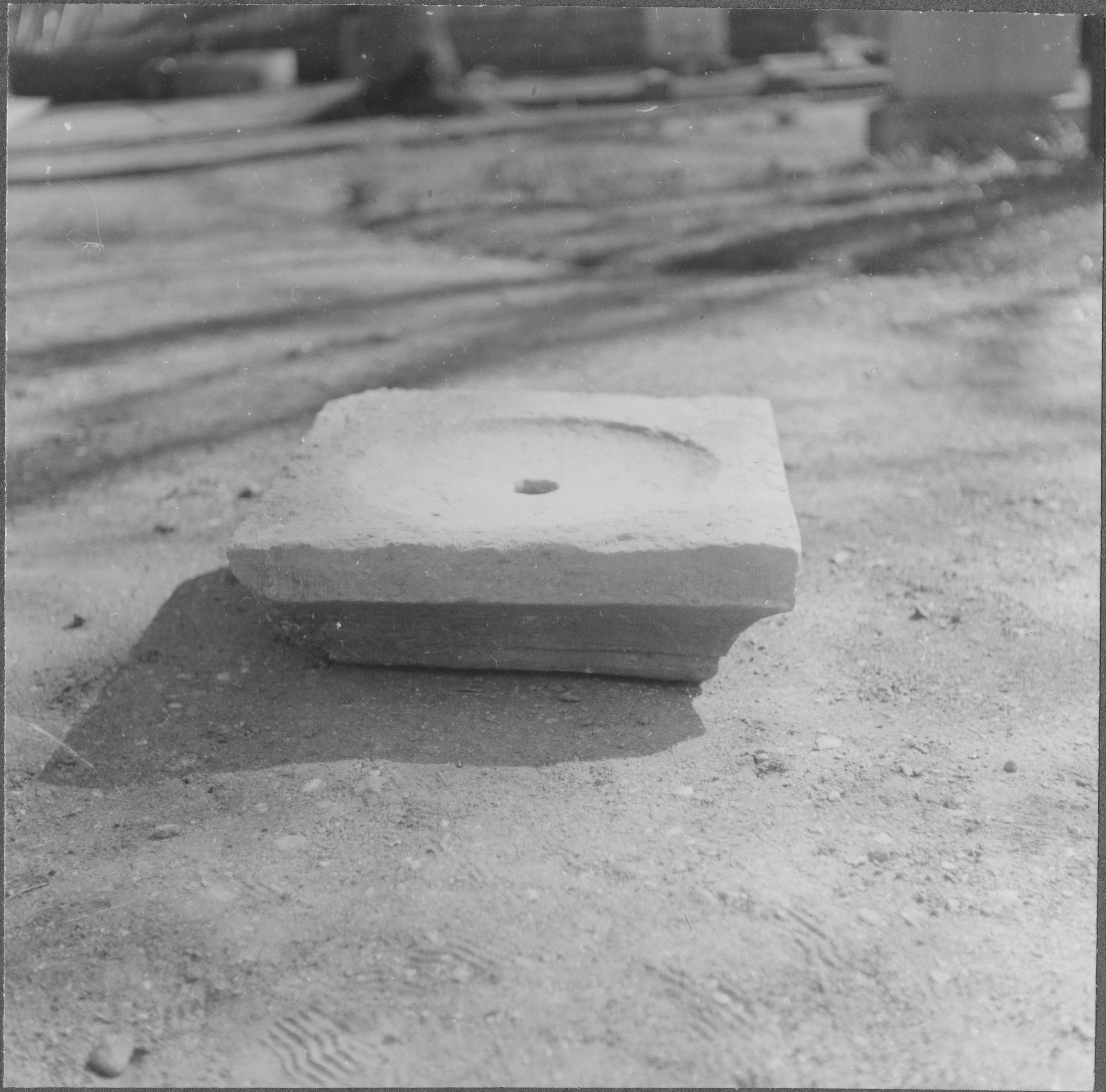 Beskrivning: Piscina (?), huggen utskårad kalksten.