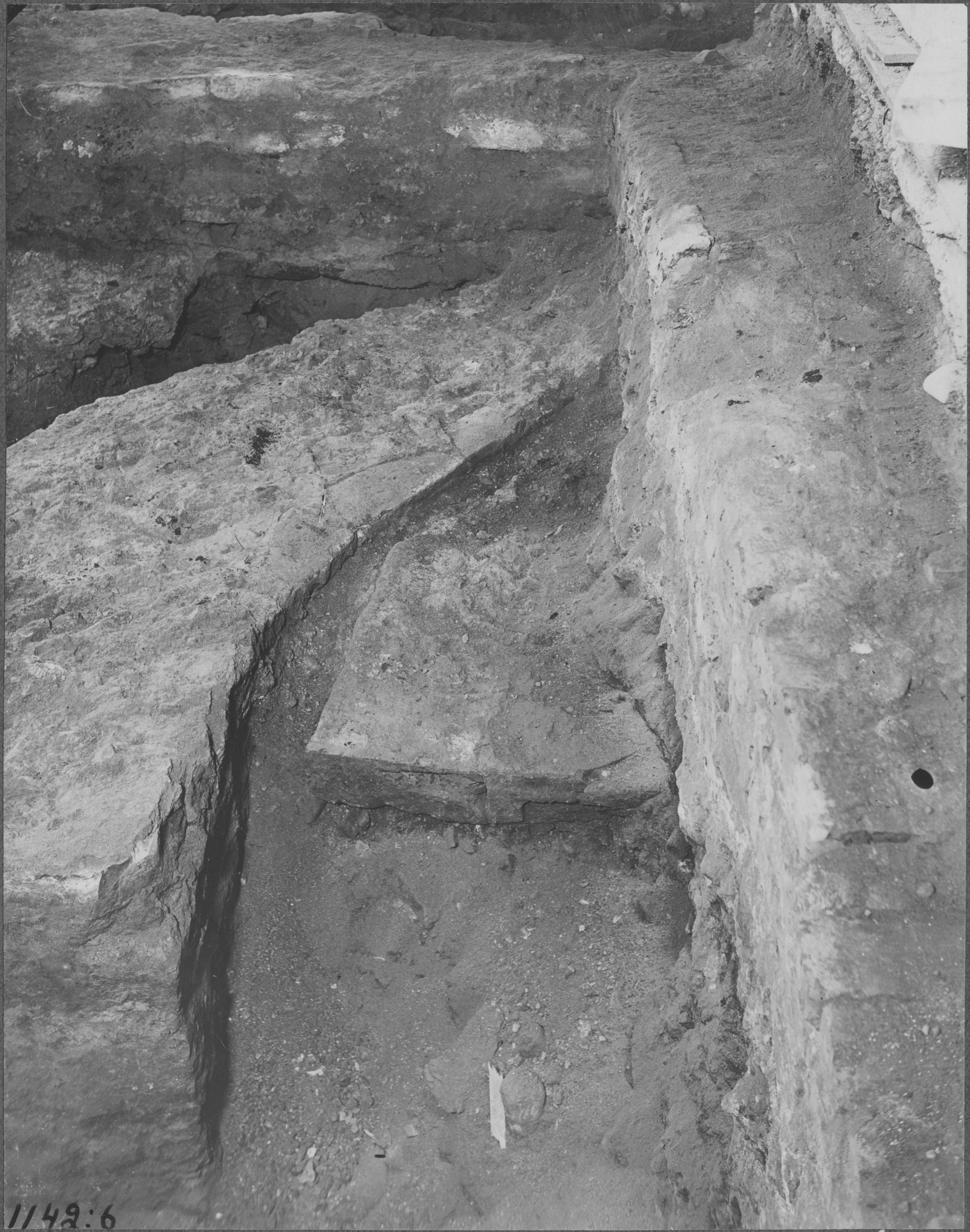 Beskrivning: 1100-talskyrkans absid, detalj med rest av trappsteg.