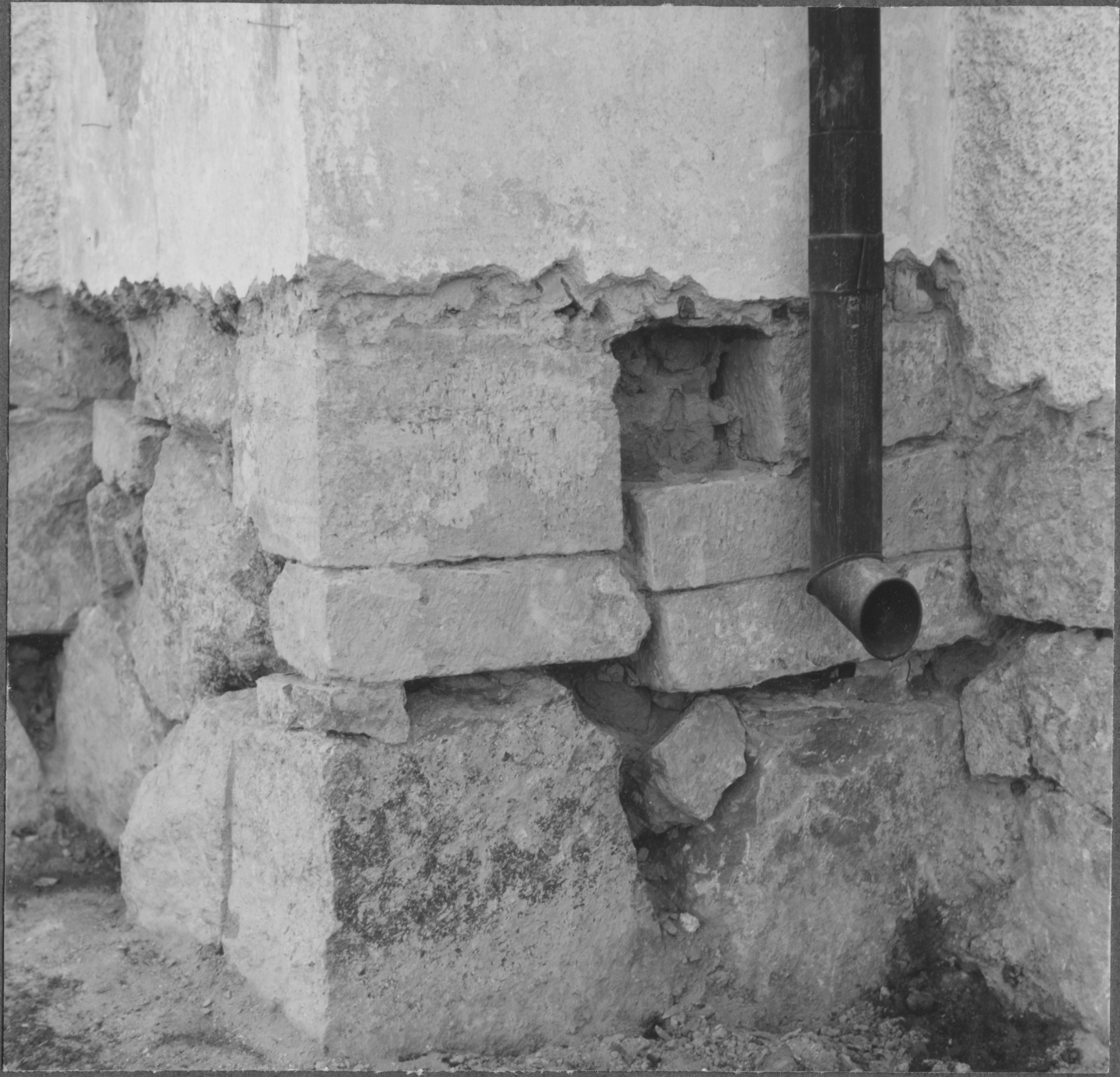 Beskrivning: Kalksten, medeltida huggen. Nordöstra hörnet av långhuset.