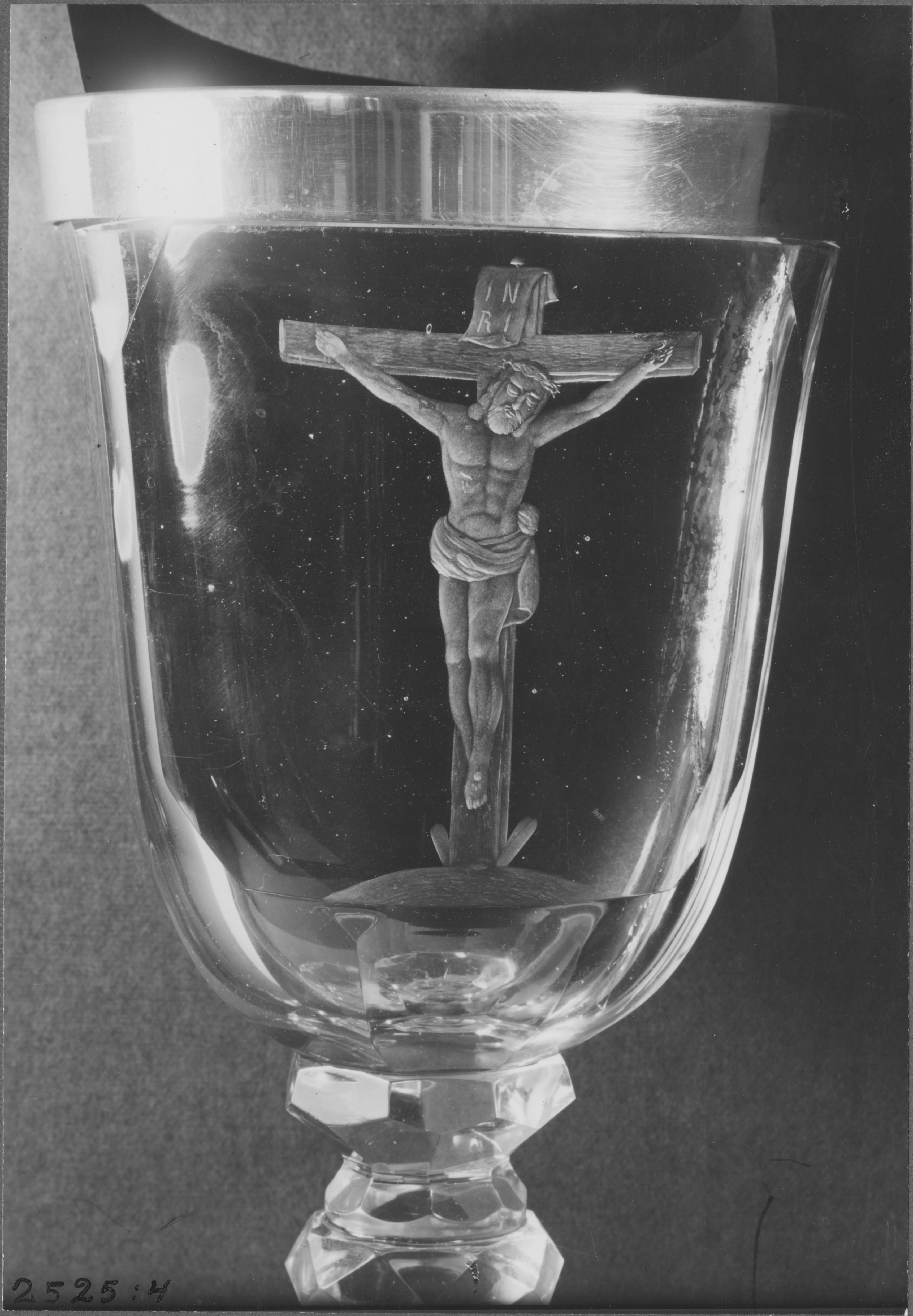 Beskrivning: Kalk av glas som blåsts vid Rejmyre glasbruk.