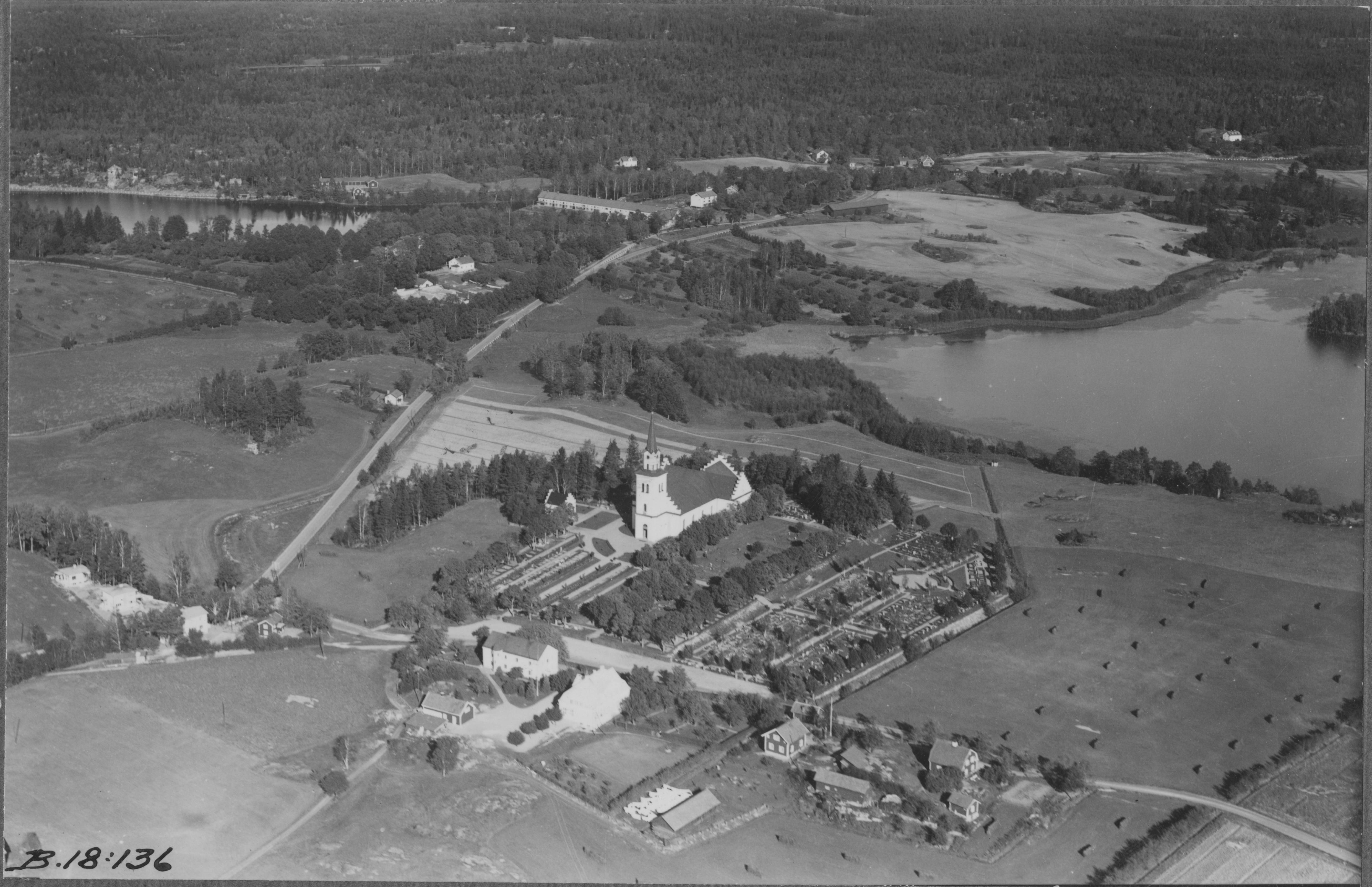 Beskrivning: Kyrkan med omgivning från sydväst.