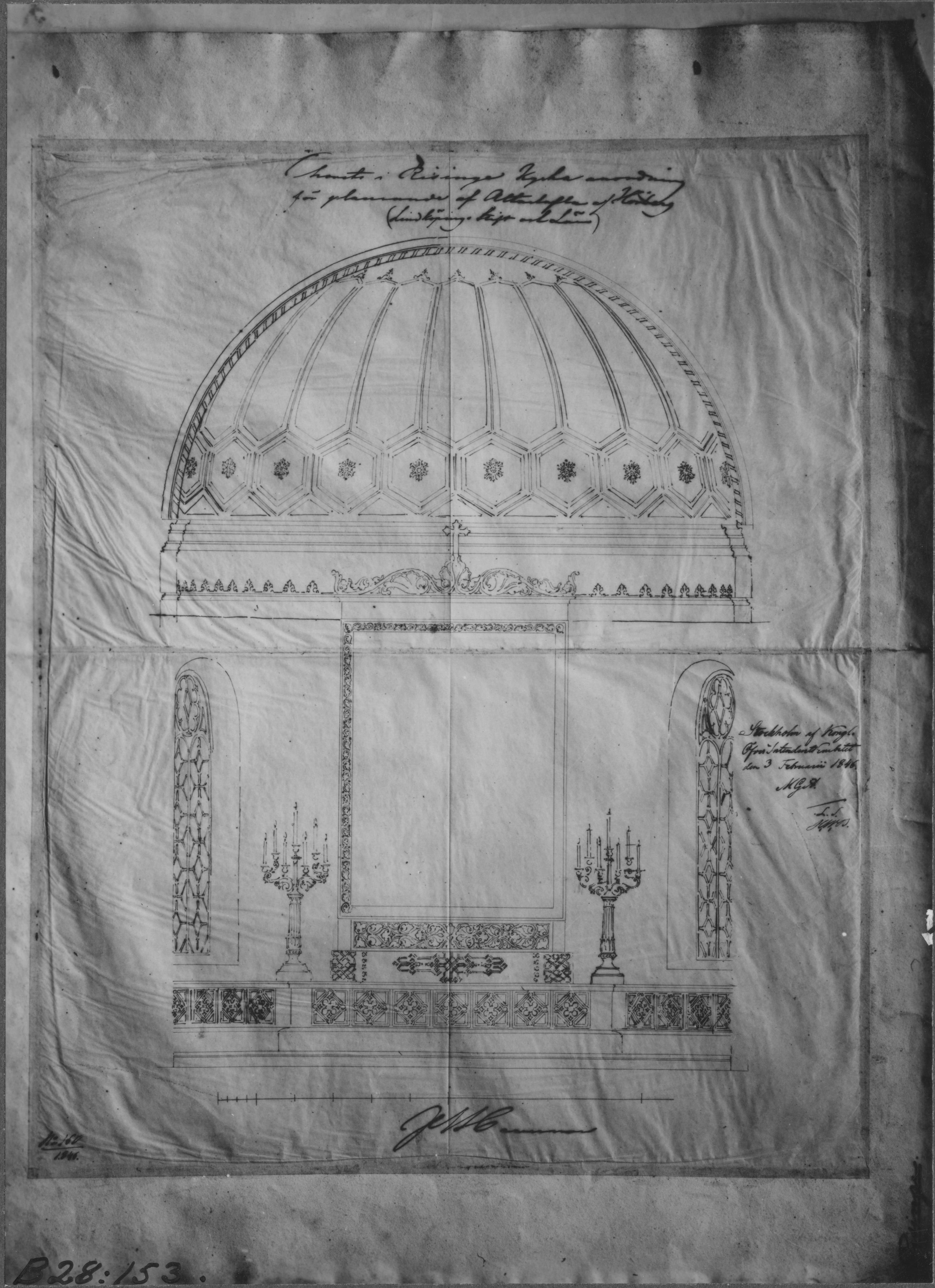 Beskrivning: Altare. Ritning med förslag av altare till nya kyrkan av Pehr Hörberg.