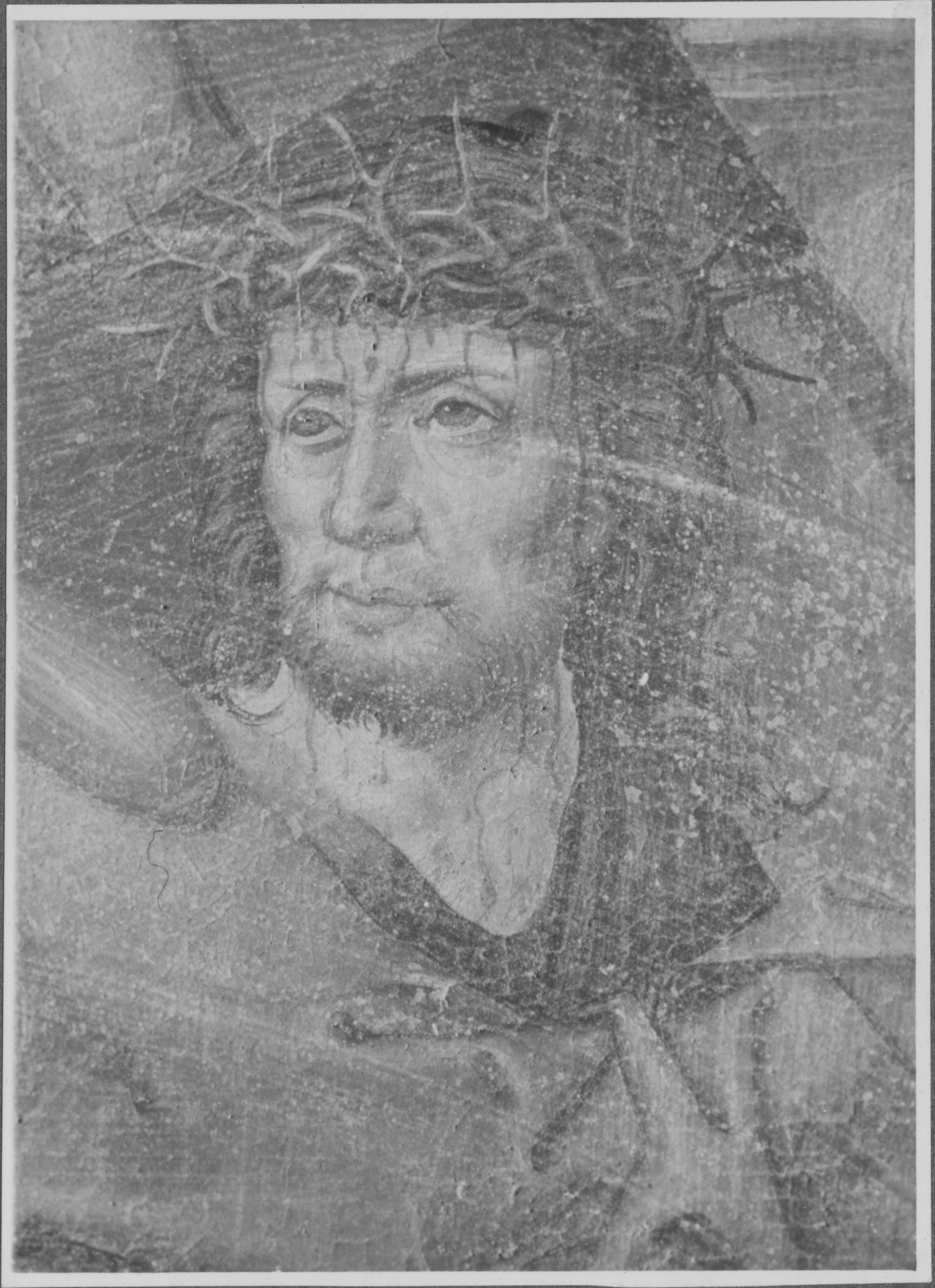 Beskrivning: Altarskåpsdörren, inre vänstra, utsidan. Detalj.