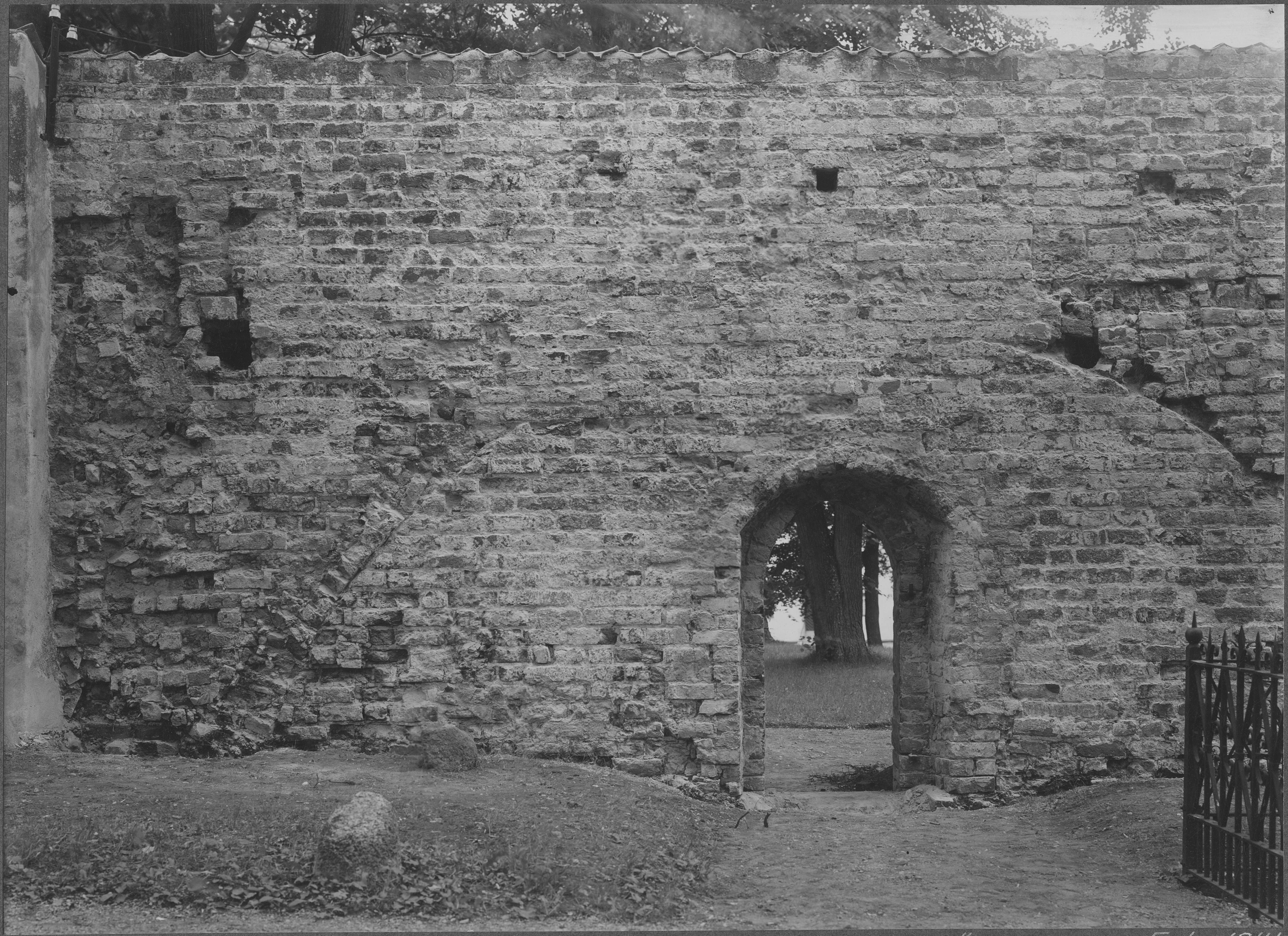 Beskrivning: Beskrivning: Portmuren efter putsens avknackande 1941. Från öster.