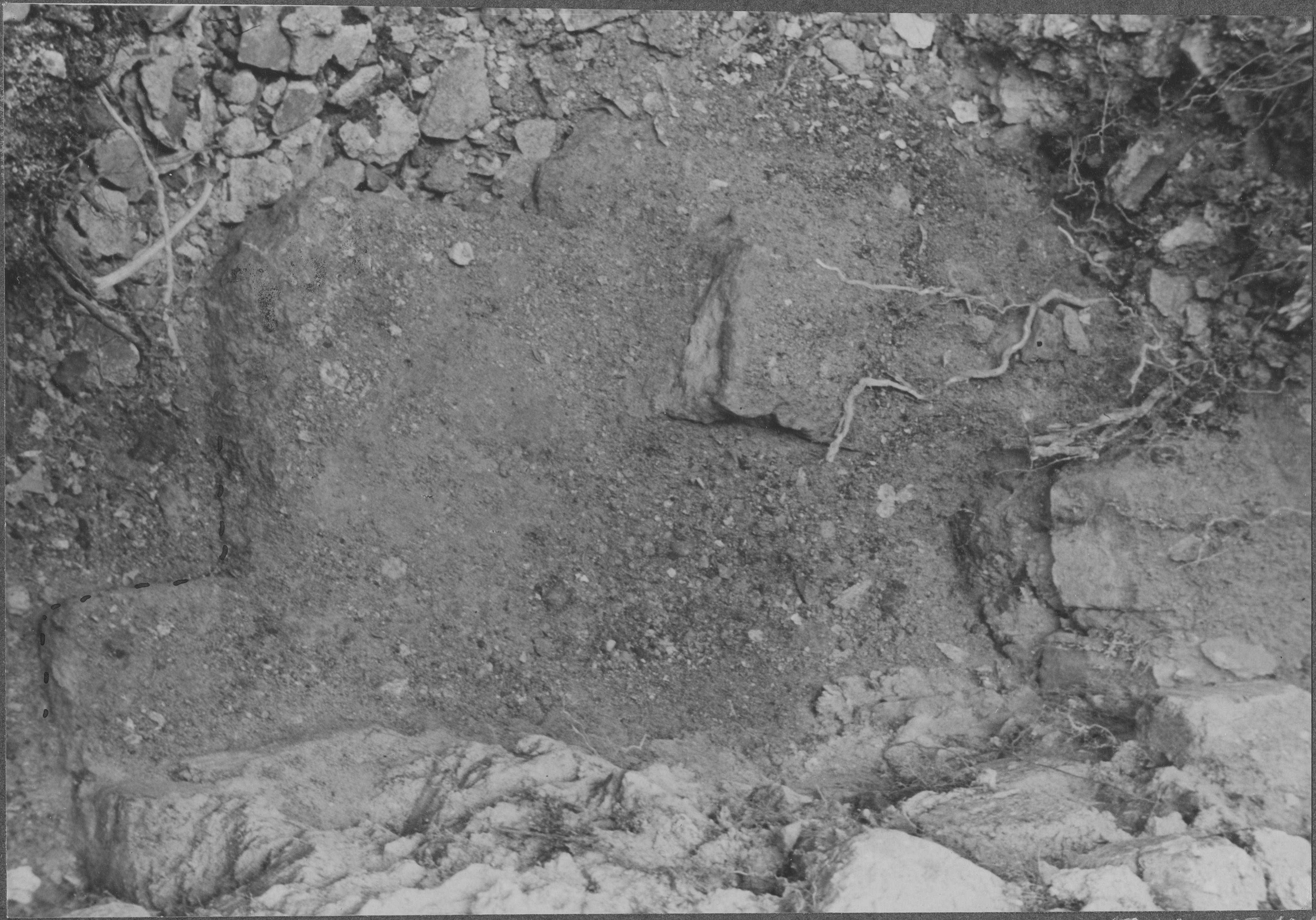 Beskrivning: Spår av det södra forna tunnvalvets ansättning intill portmurens östra sida.