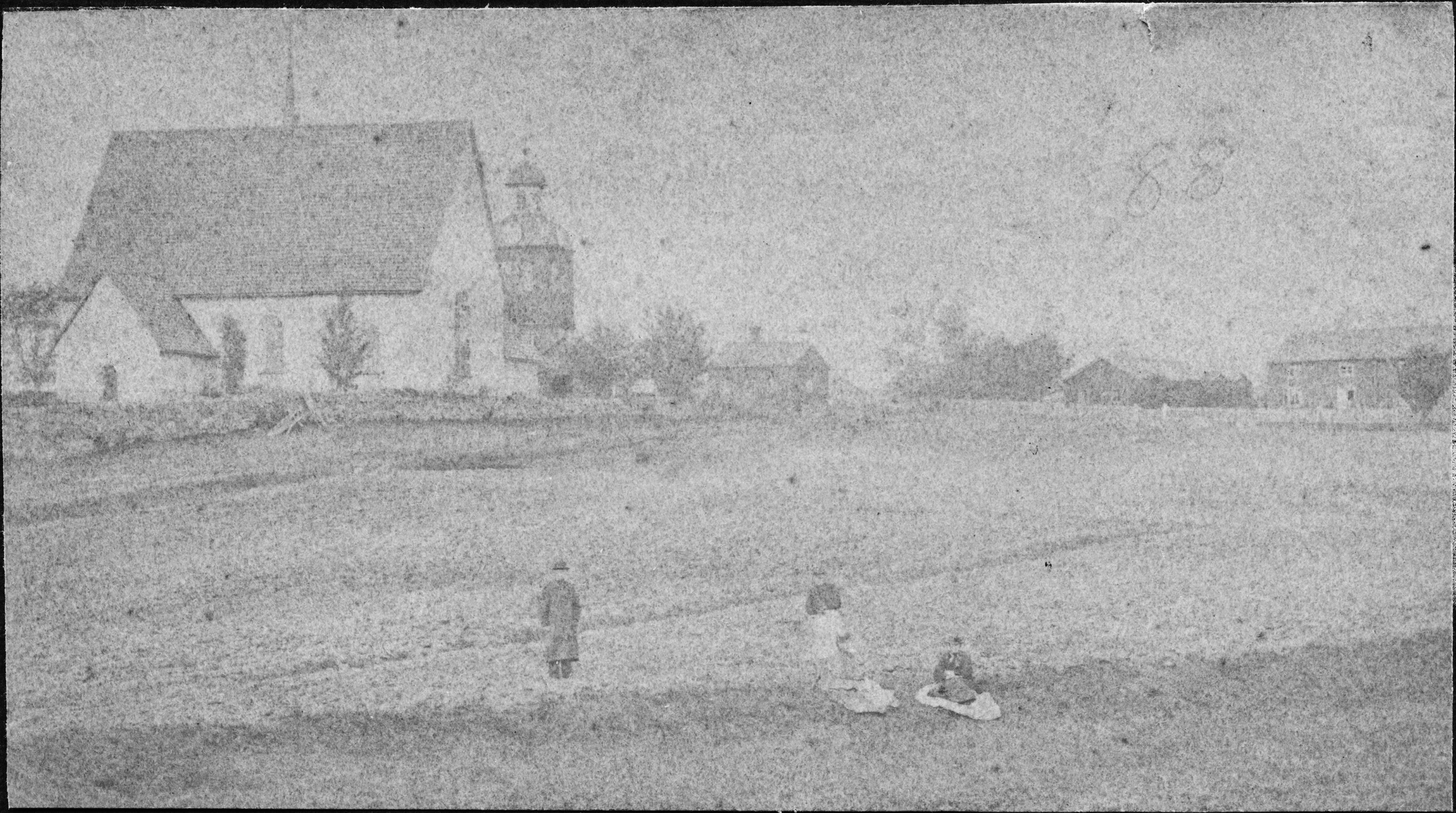 Beskrivning: Kyrkan från sydöst. "Foto från 1870-talet".