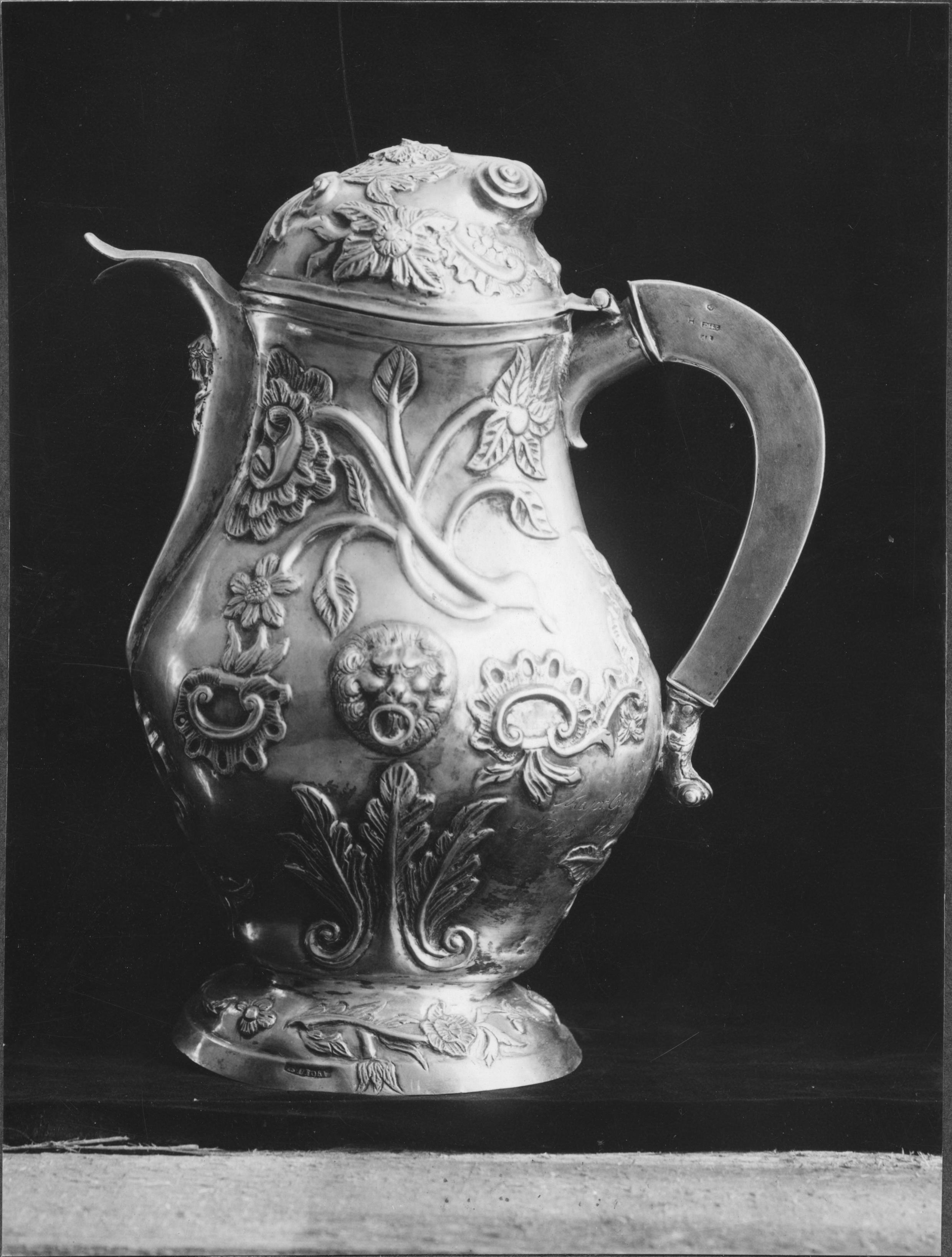 Beskrivning: Vinkanna av silver, tillverkad i Härnösand 1760.