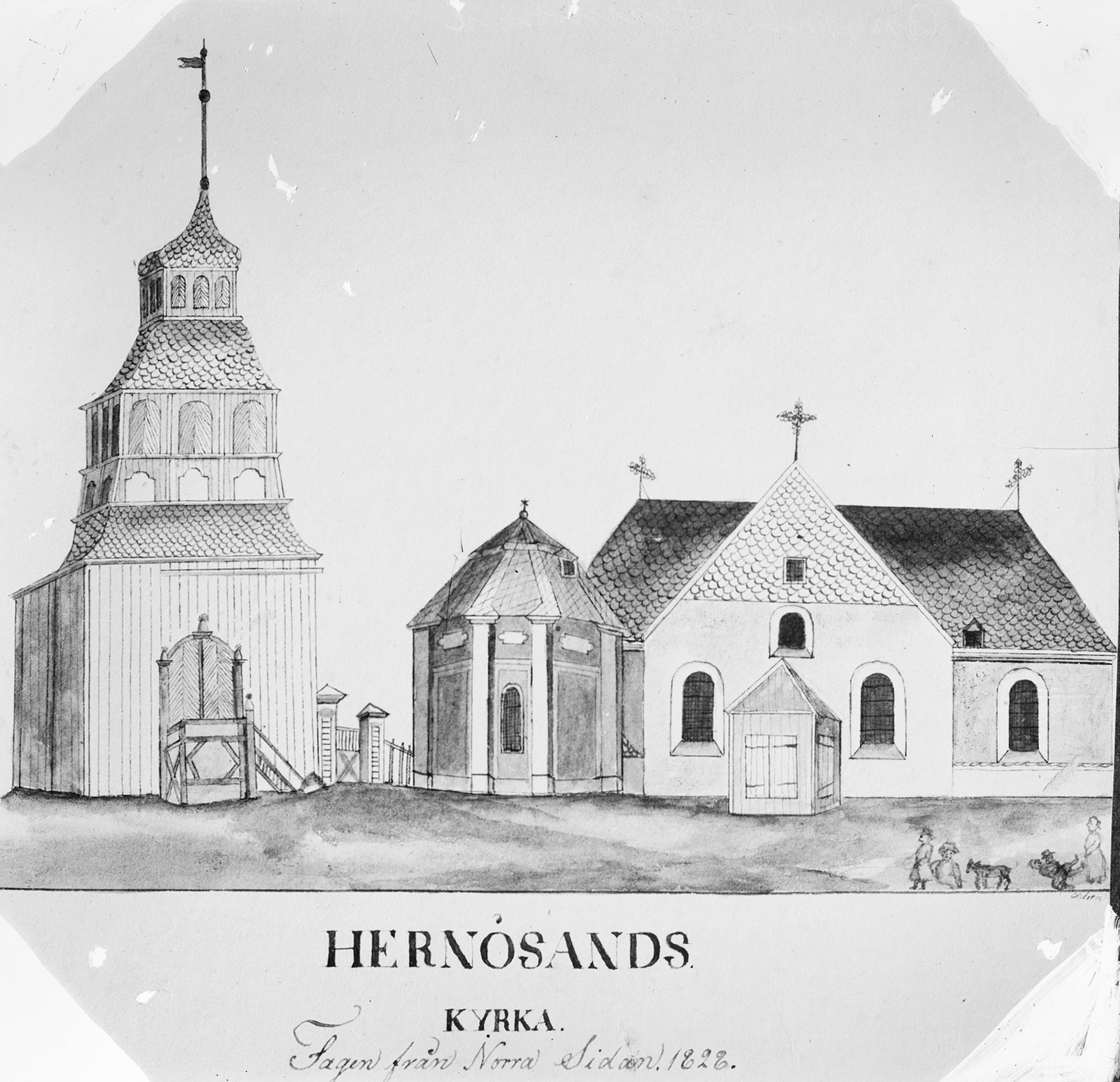 Beskrivning: Domkyrkan från norr. ur Ohlssons Ångermanlands kyrkor. 1828. Ekdahls samling. Foto.