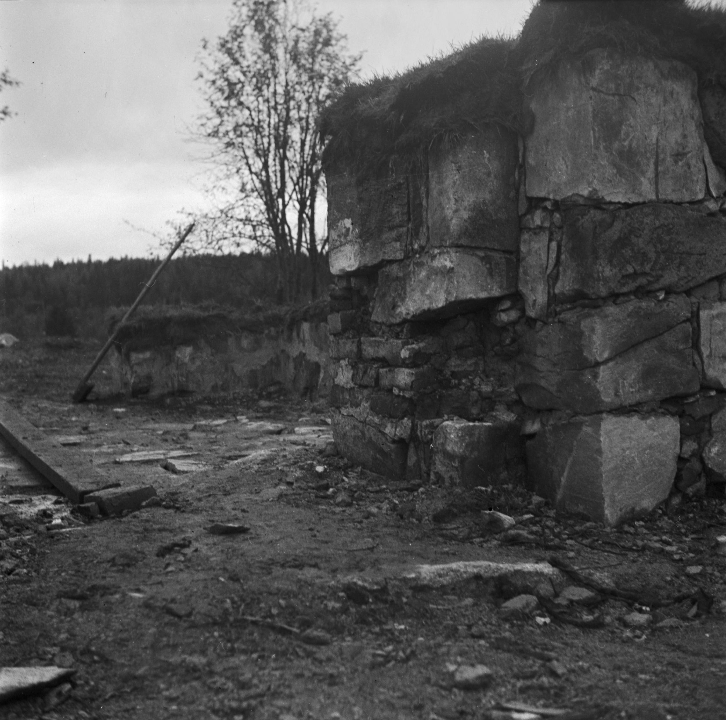 Beskrivning: Kyrkoruinen. Ingången från vapenhuset, sett från långhuset.