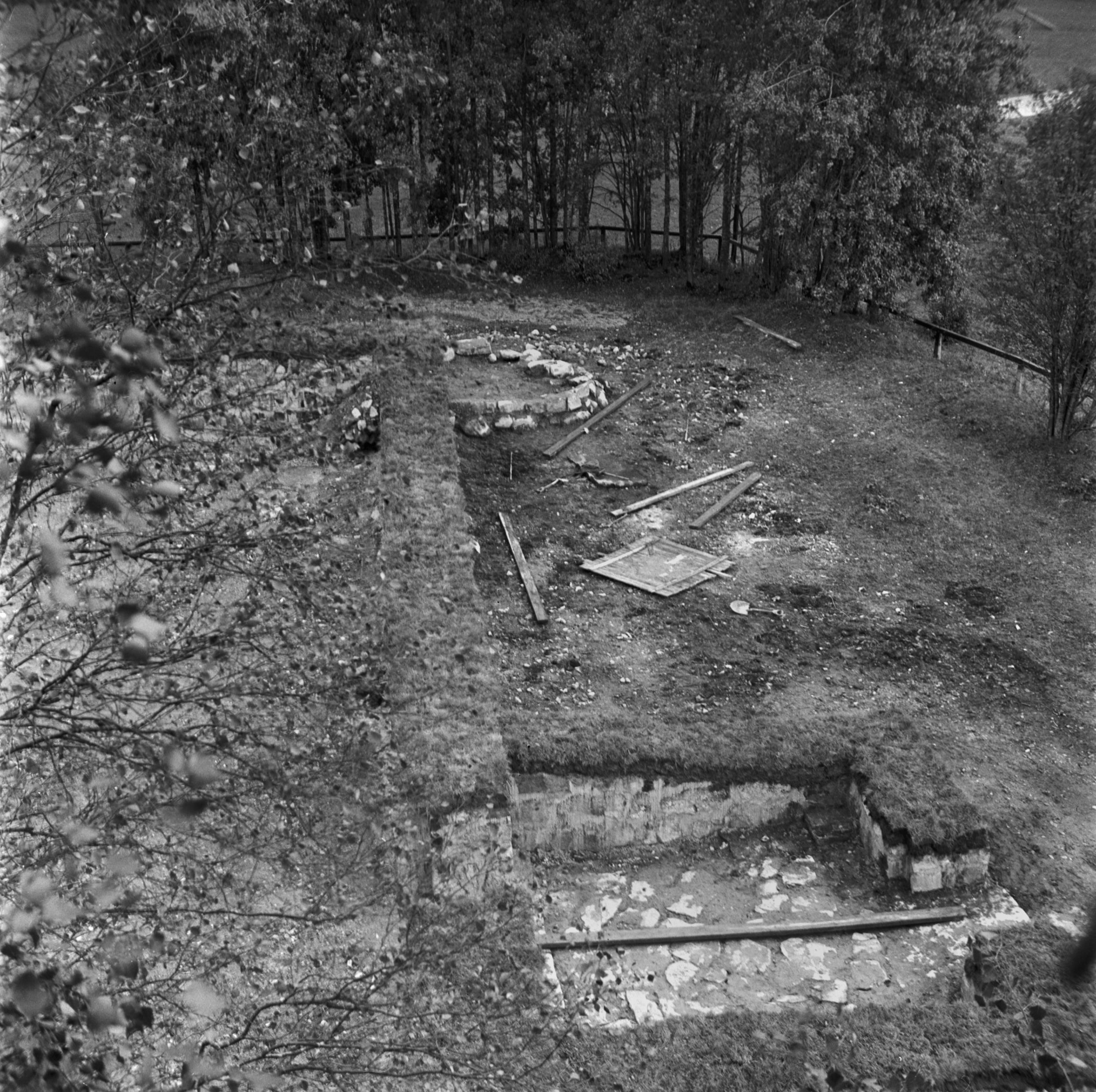 Beskrivning: Kyrkoruinen. Ruinens södra del från väster.