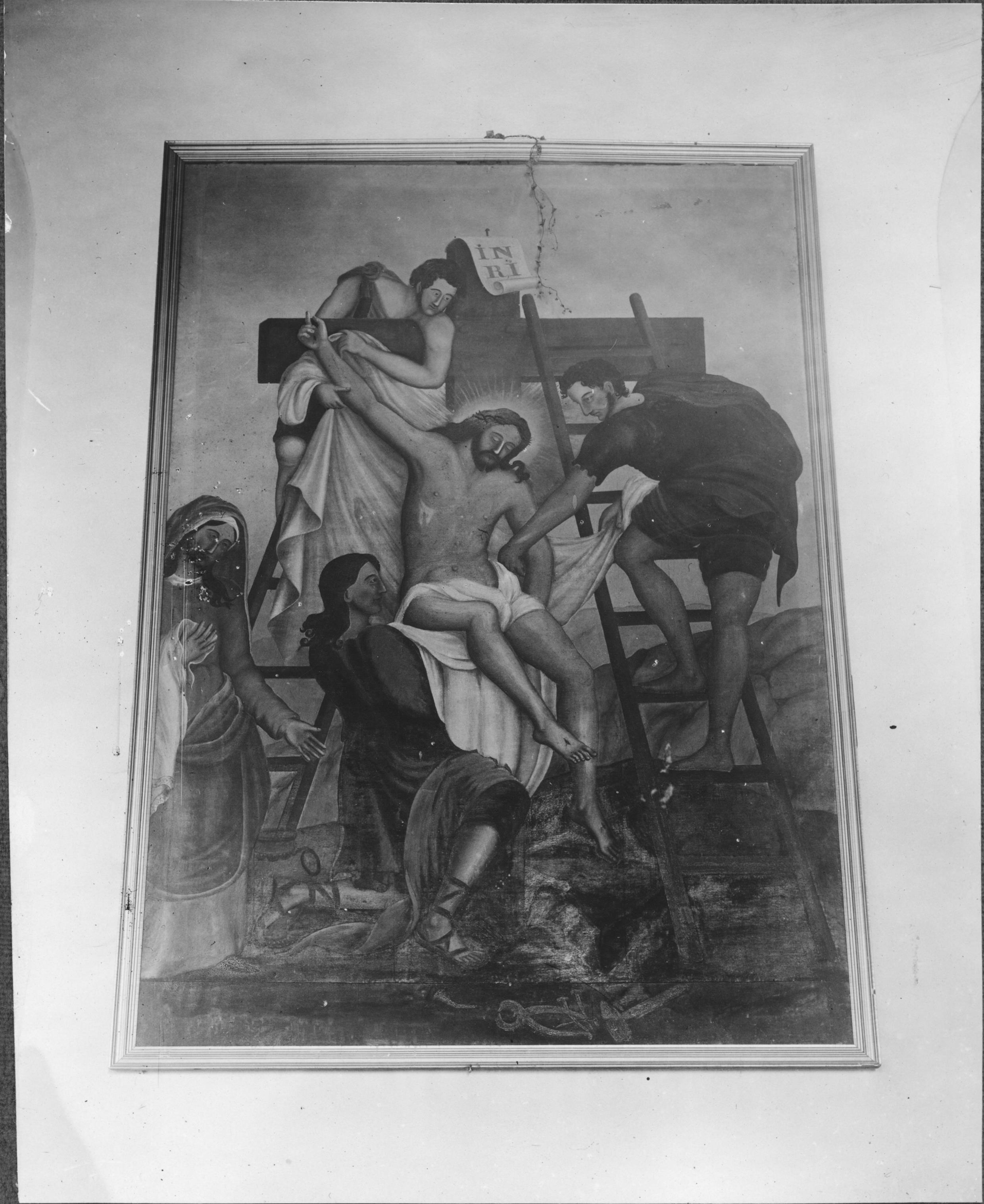 Beskrivning: Tavla, föreställande Jesu nedtagande från korset.