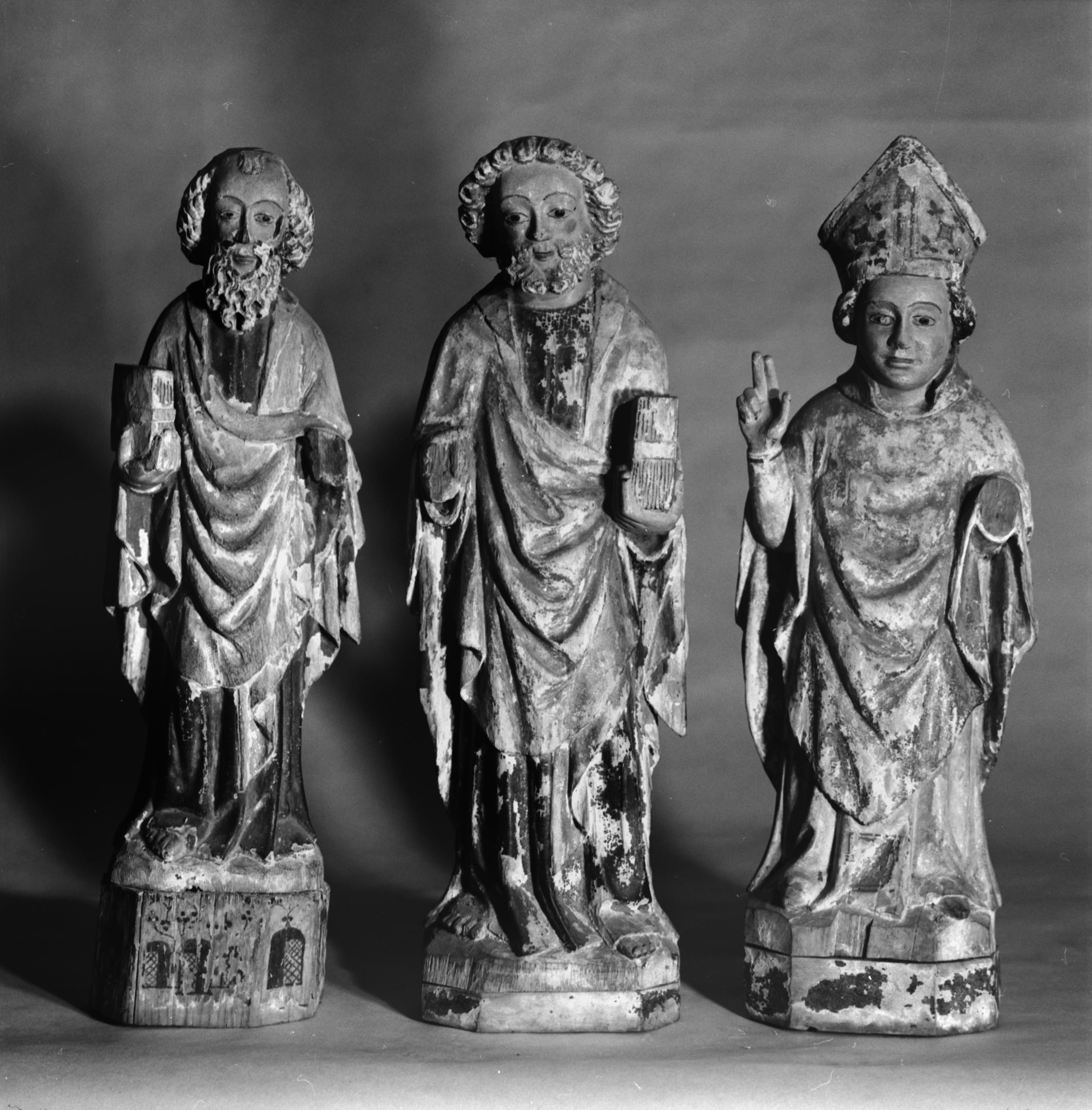 Beskrivning: Träskulptur från ett numera saknat altarskåp. Omkring 1500.