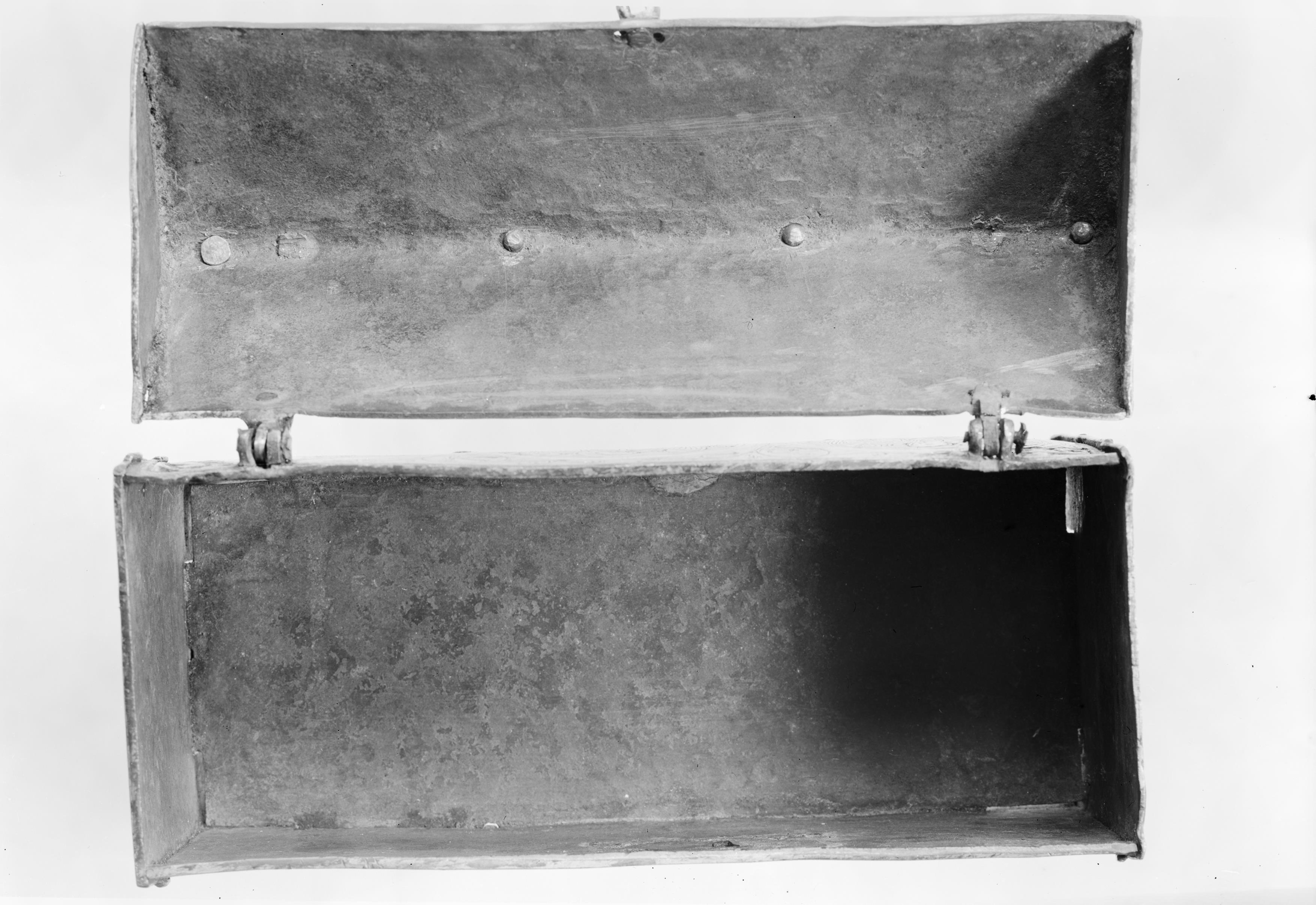 Beskrivning: Beskrivning: Relikskrin av koppar, omkring 1200. Franskt arbete.