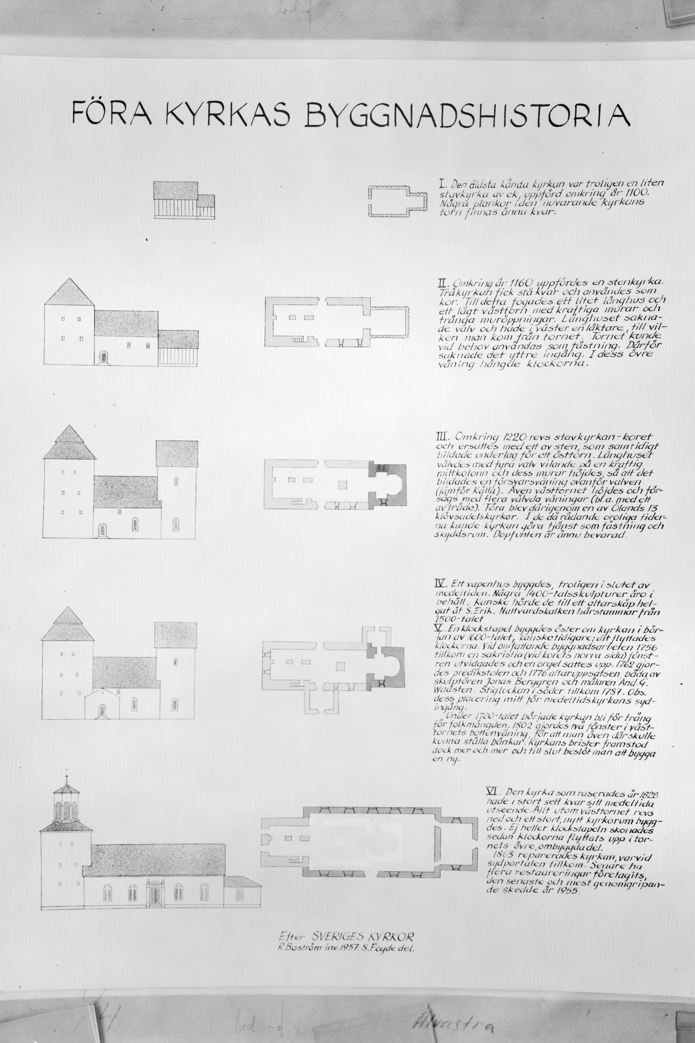 Beskrivning: Teckningar av kyrkans byggnadshistoria. Reprofotografi.