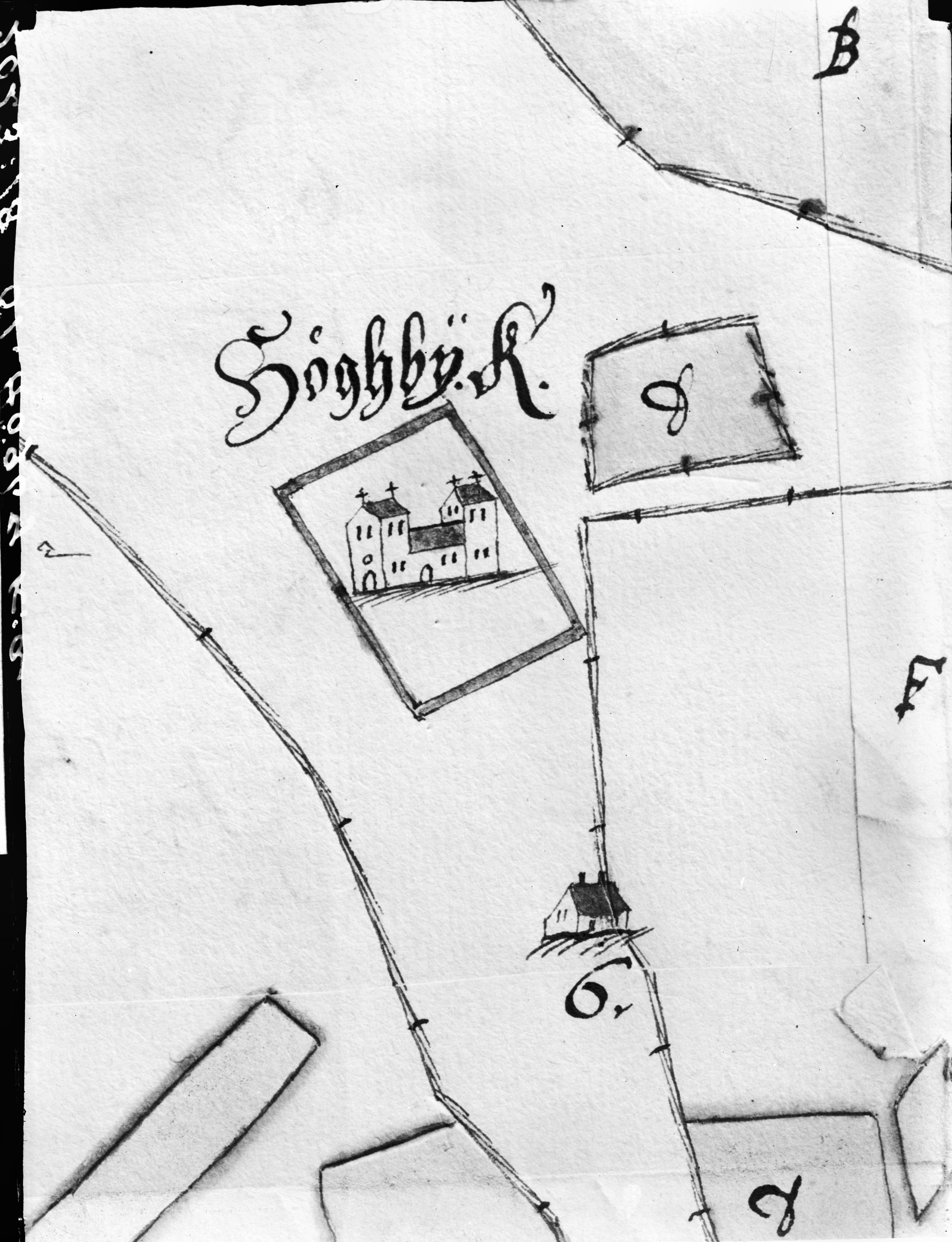 Beskrivning: Teckning av kyrkan, detalj från karta. Ur Geometrisk Book af Ölands Norre mooth 1683. Kungliga Lantmäteristyrelsens arkiv.