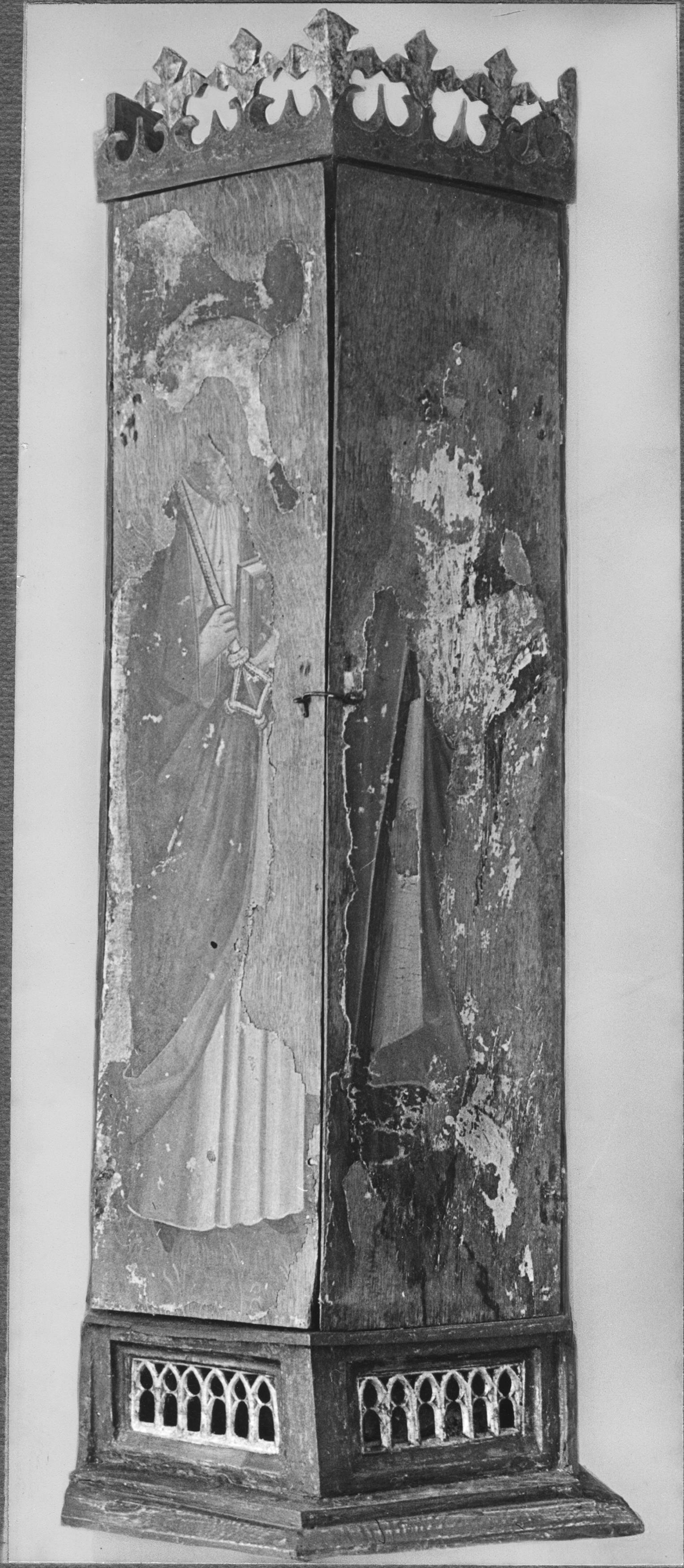 Beskrivning: Petrusskåpet efter konservering, med stängda dörrar.