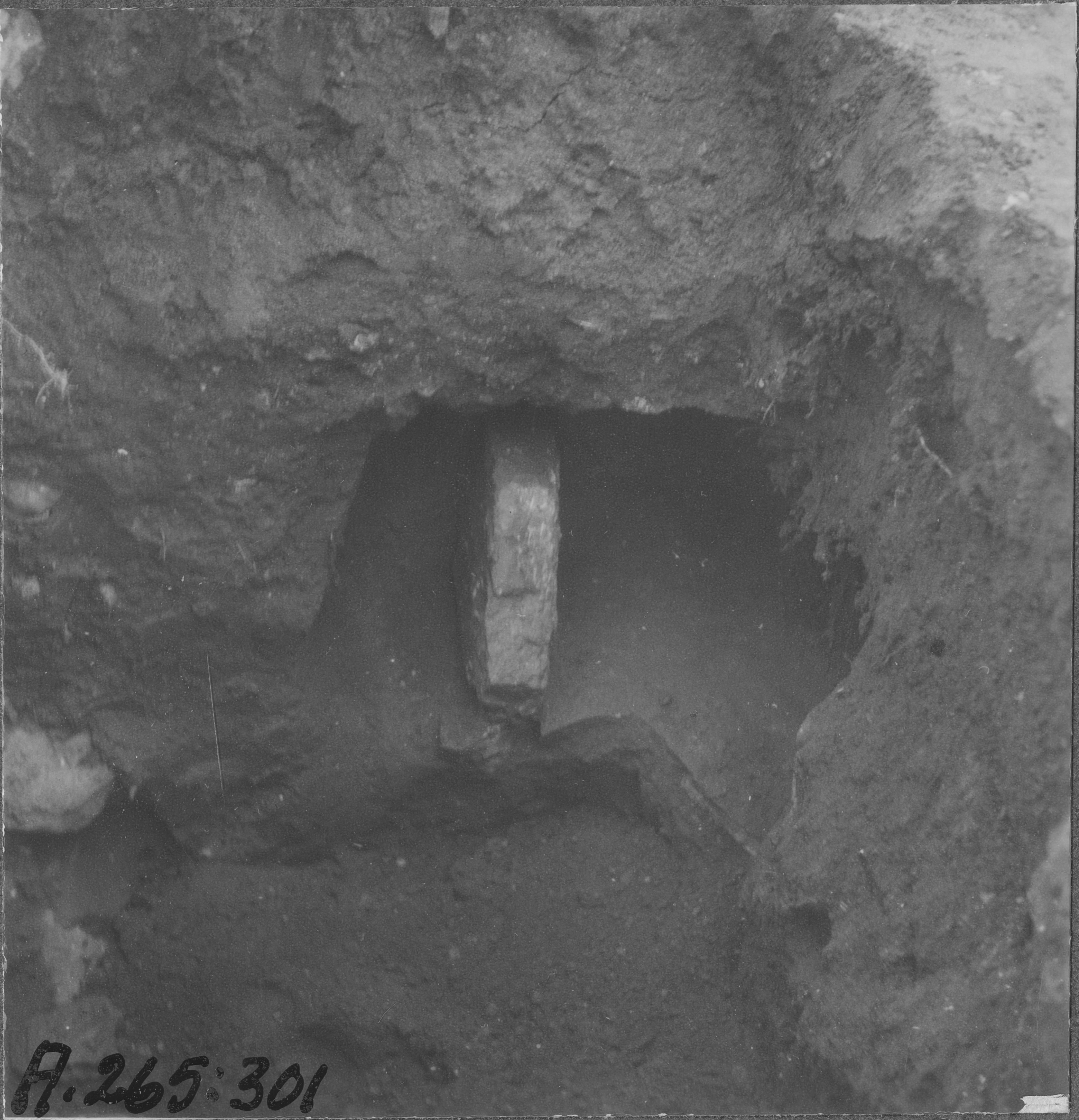 Beskrivning: Gravkistor av kalksten vid kyrkans södra mur.